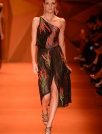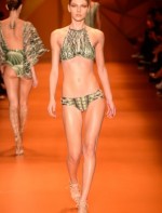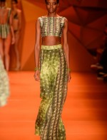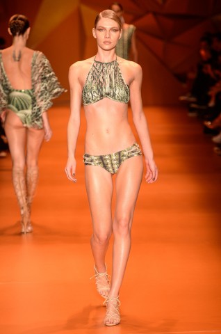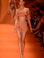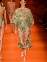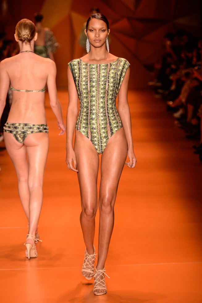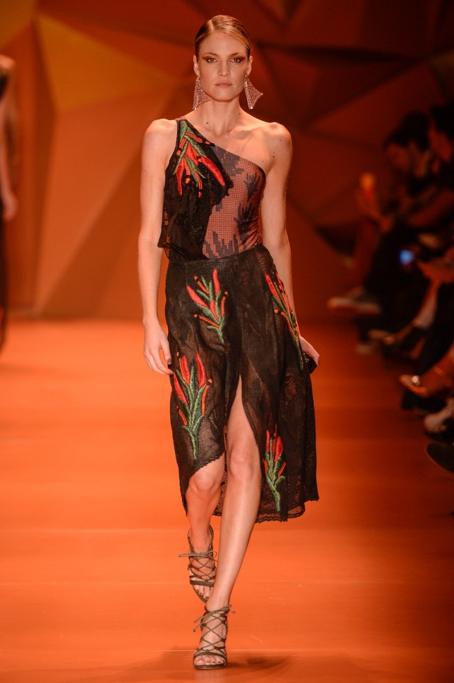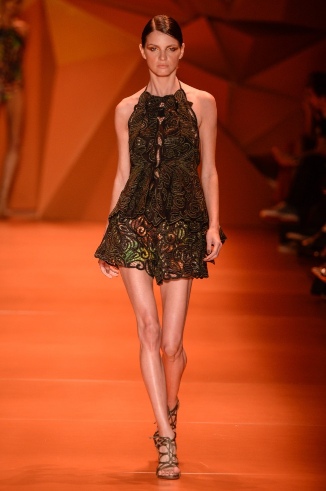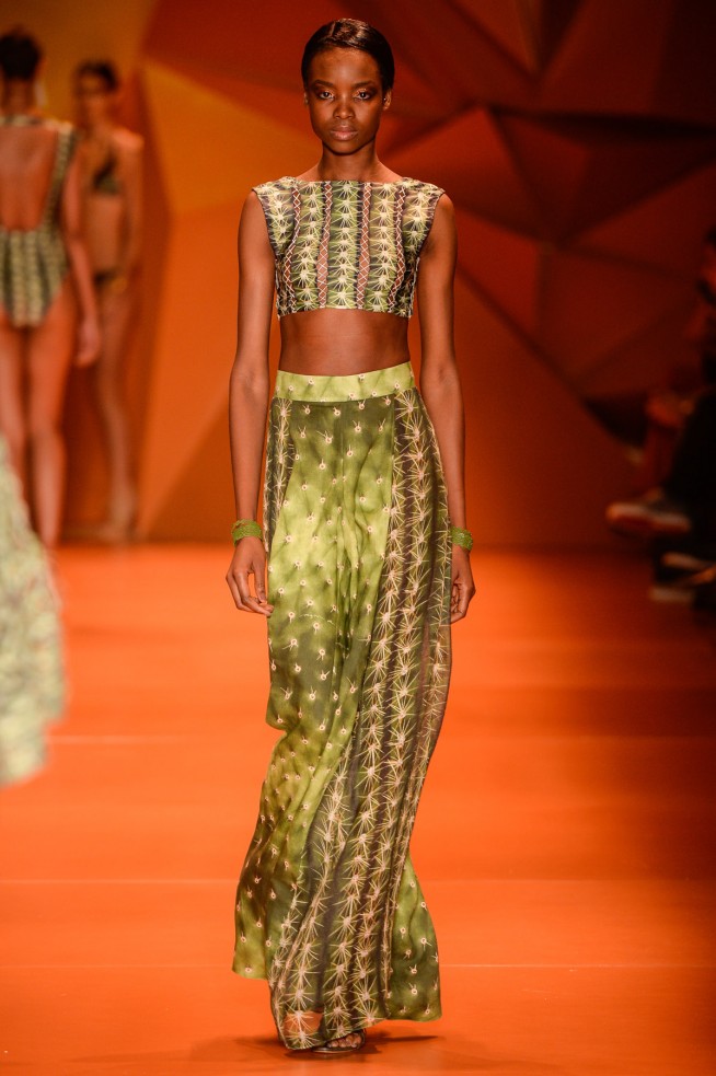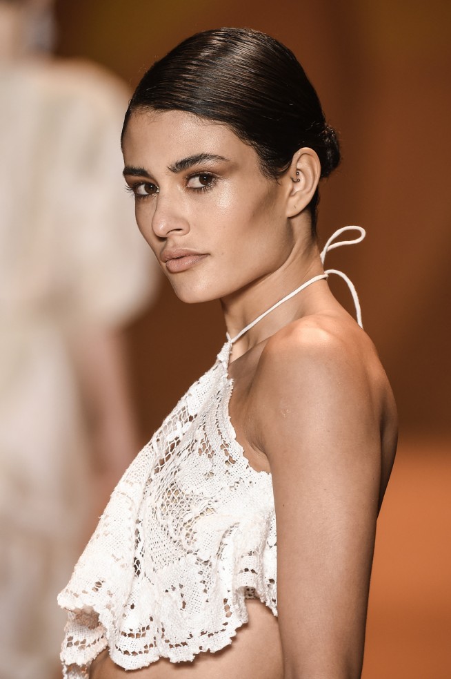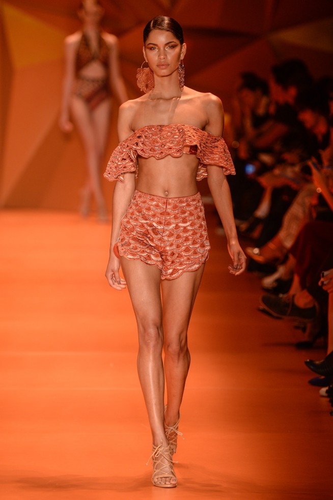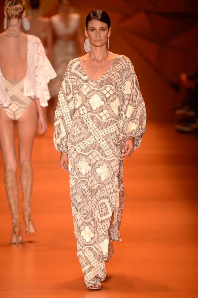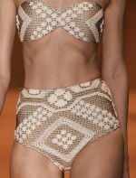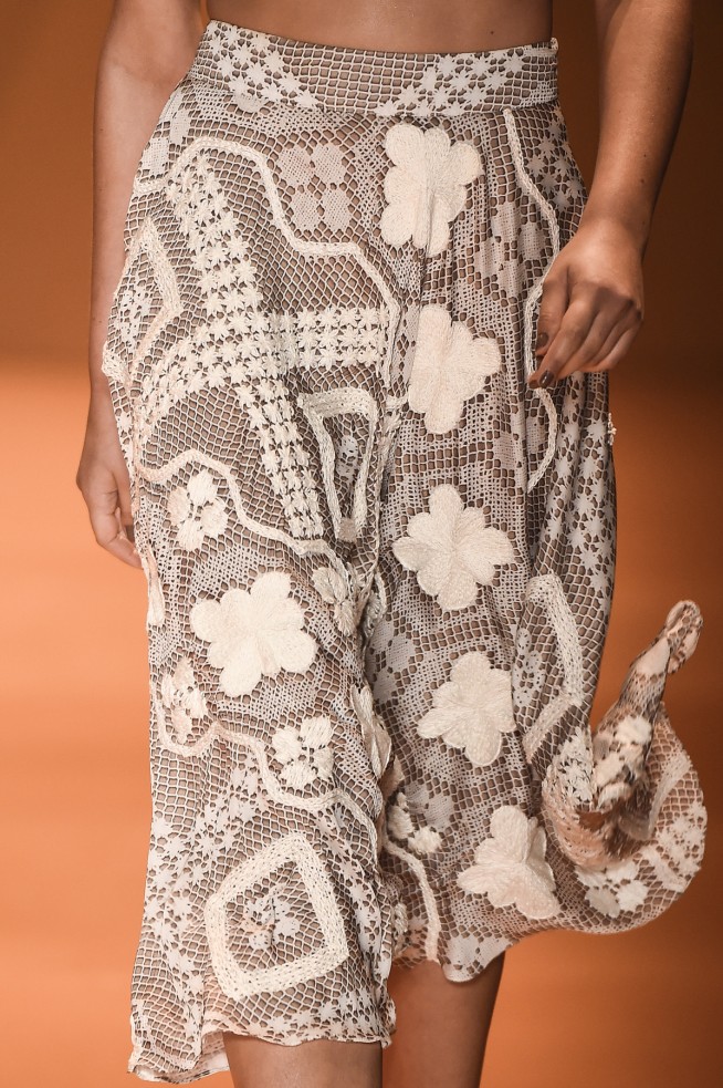 Neste verão, não faltam bordado richilieu e rendas (renascença, filé, bilro e labirinto) na passarela da marca e esses trabalhos aparecem tanto nos vestidos, blusas e saias quanto nos detalhes de maiôs e biquínis.