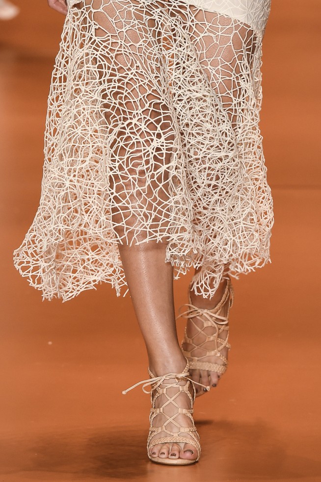 Mas não pense que as peças têm um ar boho, os looks com essas tramas bem brasileiras aparecem em versões para lá de sofisticadas! Destaque para os acessórios (amamos as gladiadoras) e os maxibrincos.
