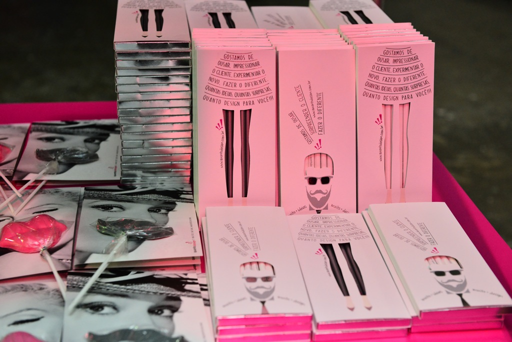Carrinho Quanto Design, empresa que fez o convite da festa e estava dando gifts personalizados para os convidados da festa: