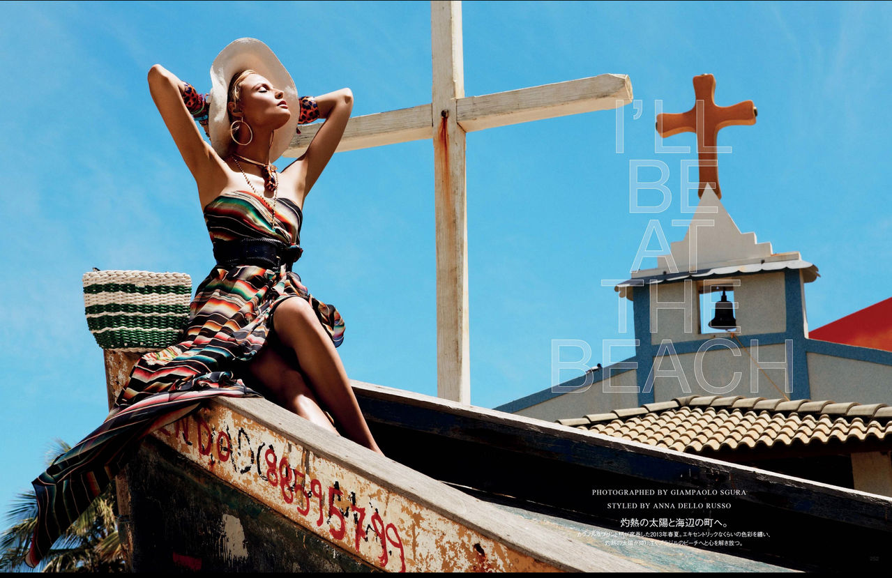 Parece que o tour de Anna Dello Russo, editora chefe e consultora criativa da Vogue Japão, pela Bahia rendeu mais um editorial. Publicamos mês passado as imagens do ensaio fotografado por Giampaolo Sgura e styling de Anna na Vogue japonesa de abril, mas para a surpresa geral, outro editorial deu as caras na publicação de maio. A dobradinha clicks + styling se repetiu, e o resultado final foi batizado de “I’ll Be At The Beach” – onde a modelo Magdalena Frackowiak, e as irmãs Suzana & Suzane Massen, mostram o que vai ser hit no próximo verão no hemisfério norte. Cheio de cor e energia, as imagens transmitem força e uma vibração que só a Bahia tem…