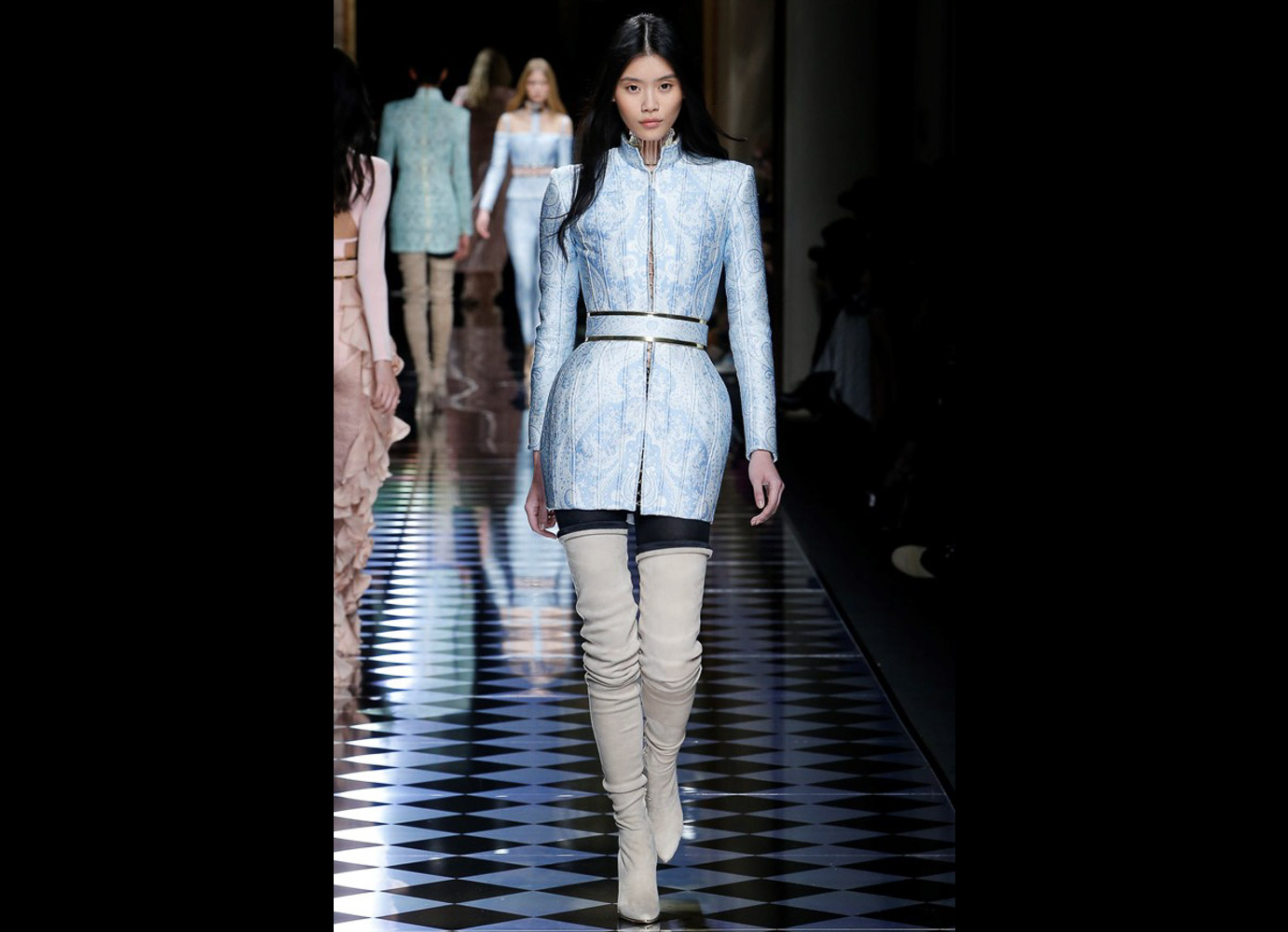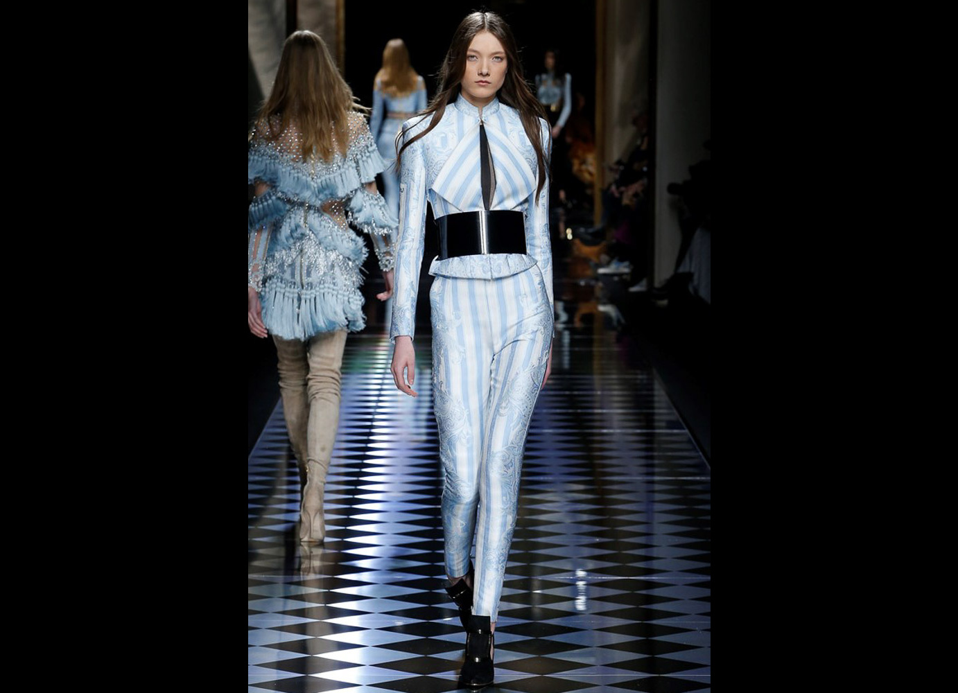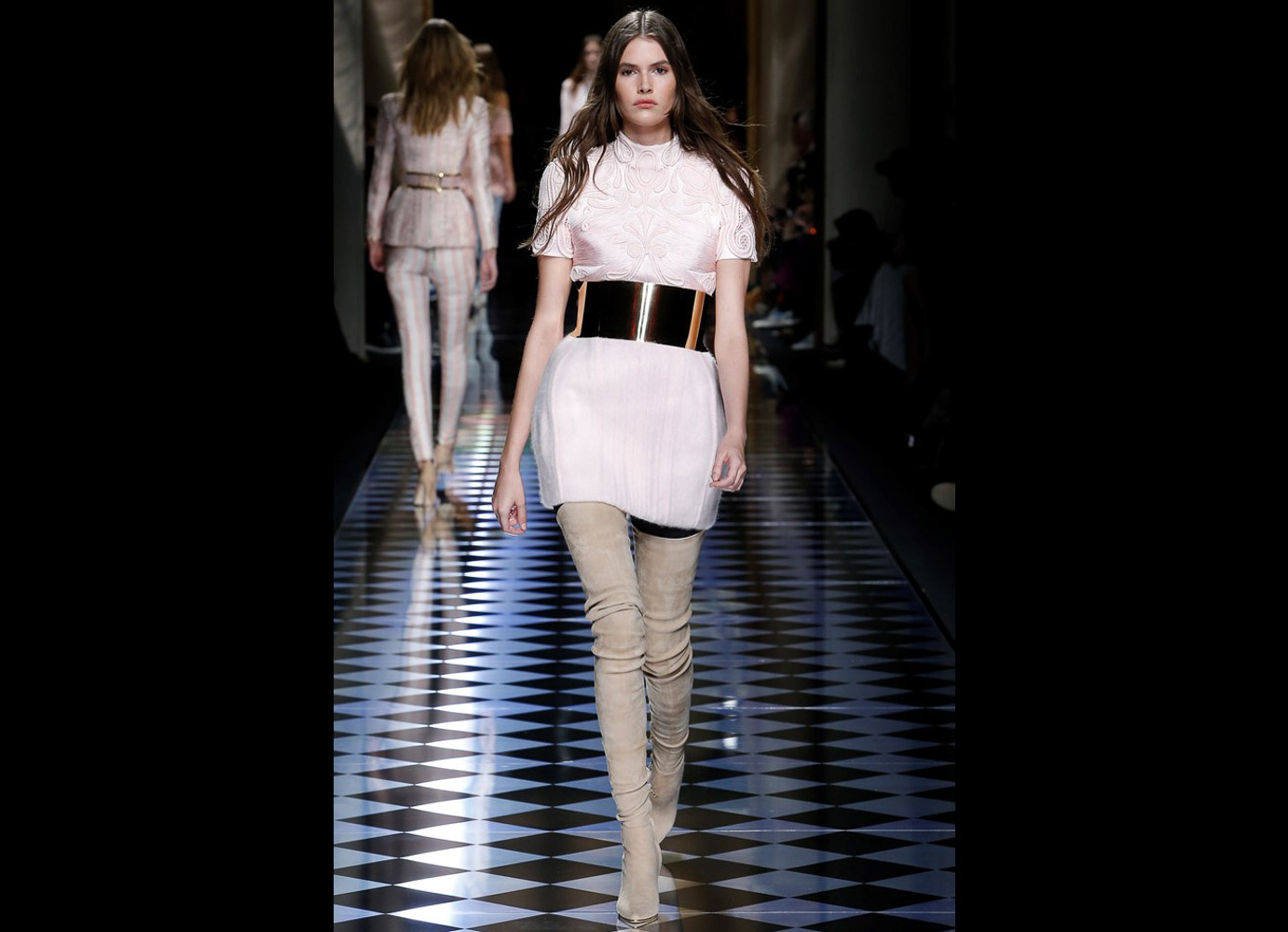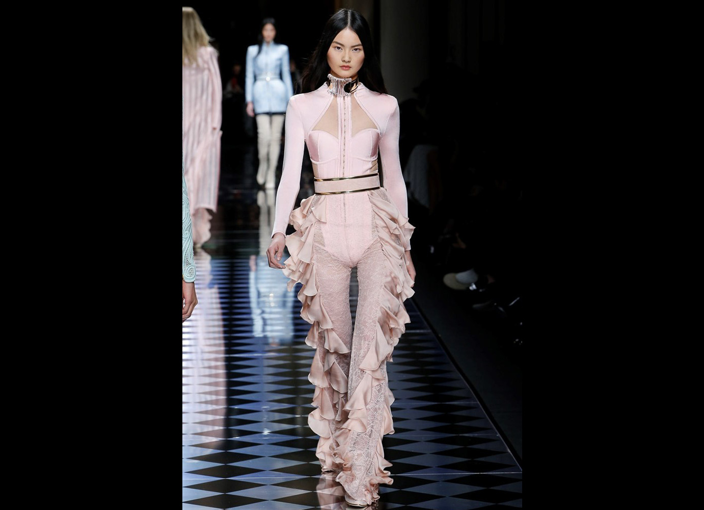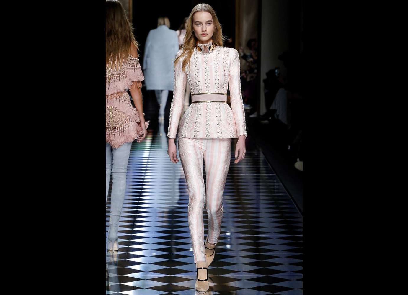 Tons pastéis em rosa e azul predominaram a passarela do desfile da Balmain ontem à tarde. Fora isso, a mídia também enlouqueceu com o fato de várias modelos trocarem a cor do cabelo, como Kendall Jenner loira e Gigi Hadid morena. O exército de Olivier também contava com a modelo britânica Rosie Huntington-Whitely, Karlie Kloss, Alessandra Ambrosio, Sara Sampaio e muitas outras. Take a look: