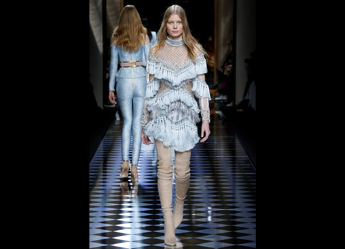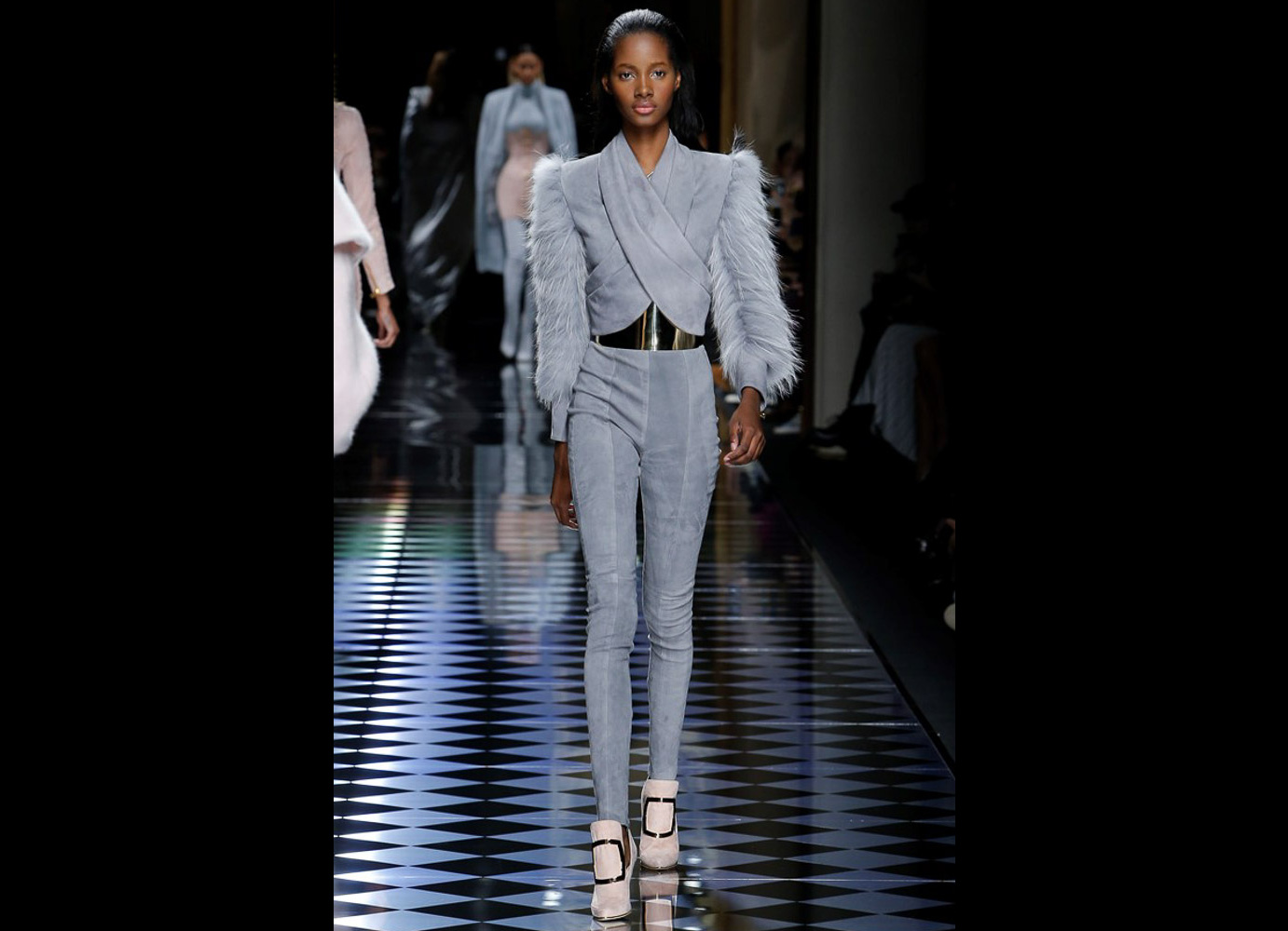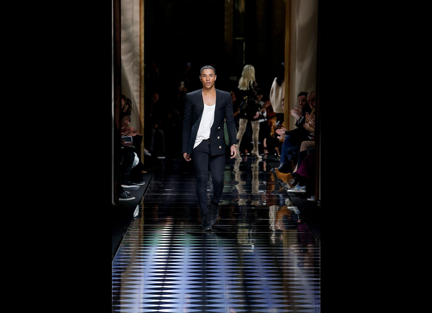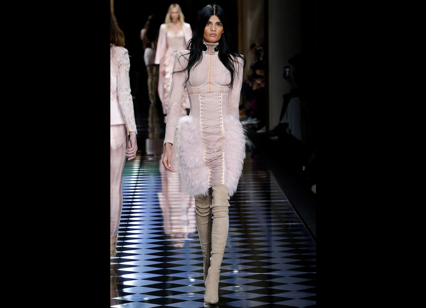 Tons pastéis em rosa e azul predominaram a passarela do desfile da Balmain ontem à tarde. Fora isso, a mídia também enlouqueceu com o fato de várias modelos trocarem a cor do cabelo, como Kendall Jenner loira e Gigi Hadid morena. O exército de Olivier também contava com a modelo britânica Rosie Huntington-Whitely, Karlie Kloss, Alessandra Ambrosio, Sara Sampaio e muitas outras. Take a look: