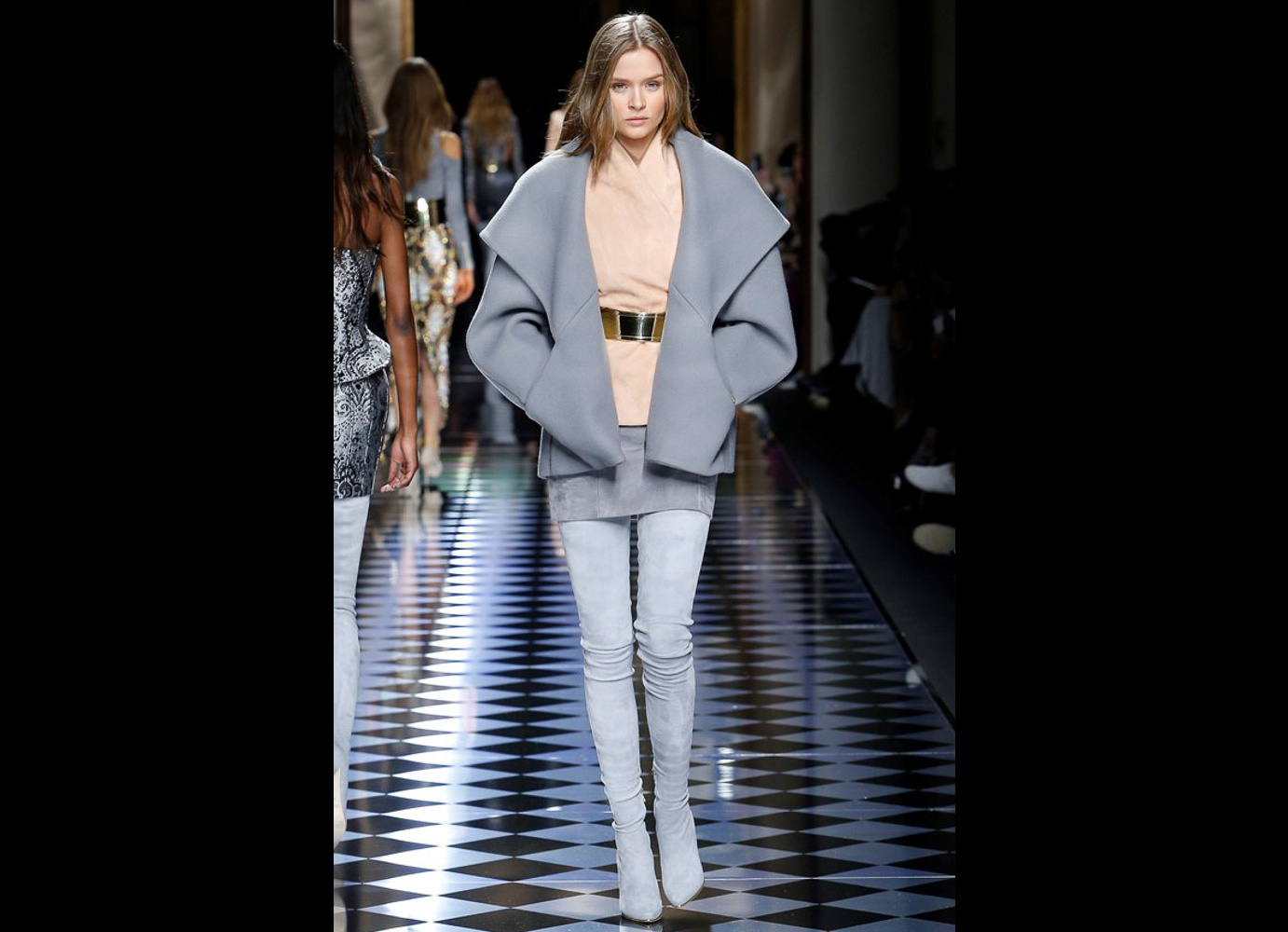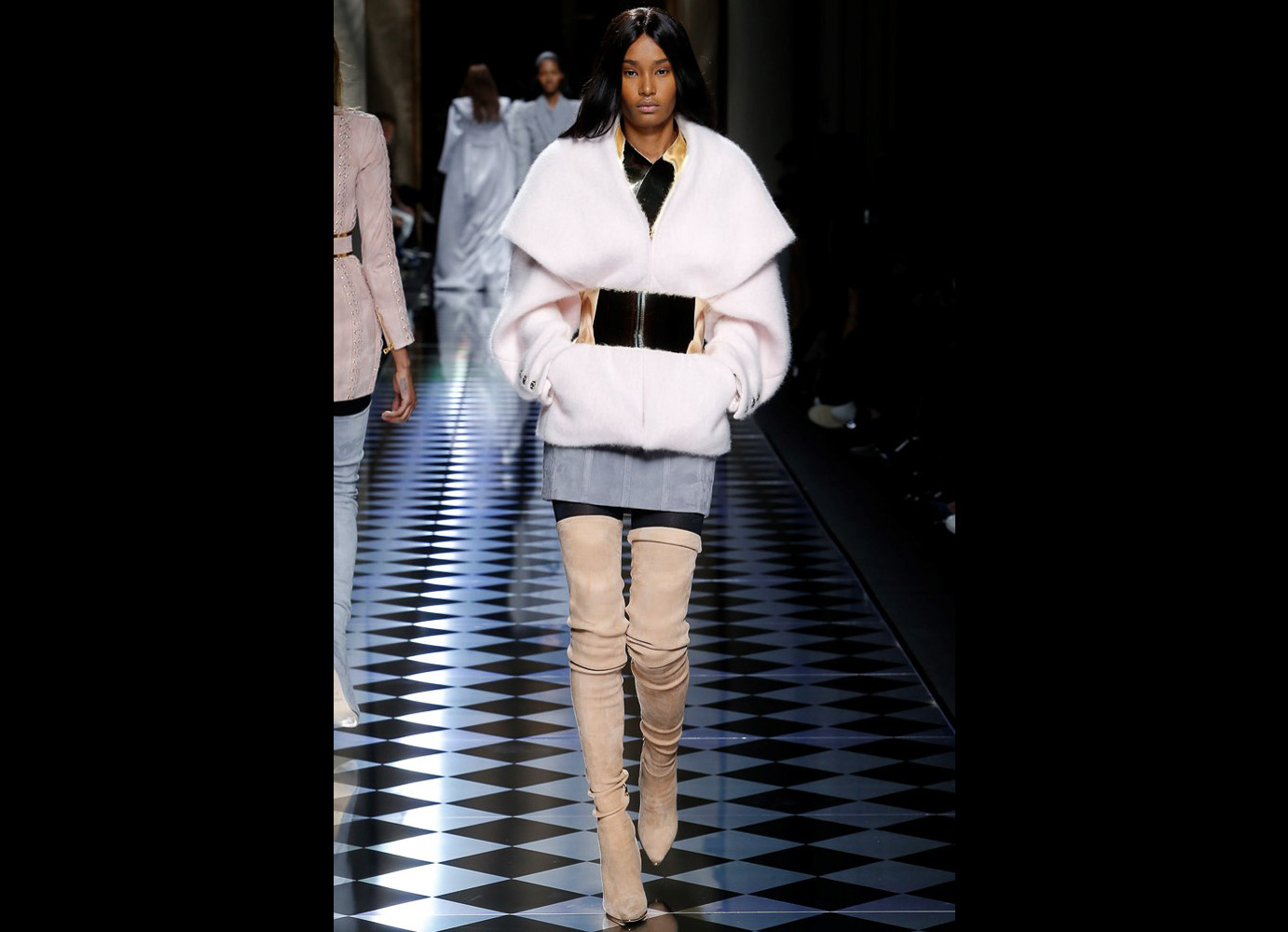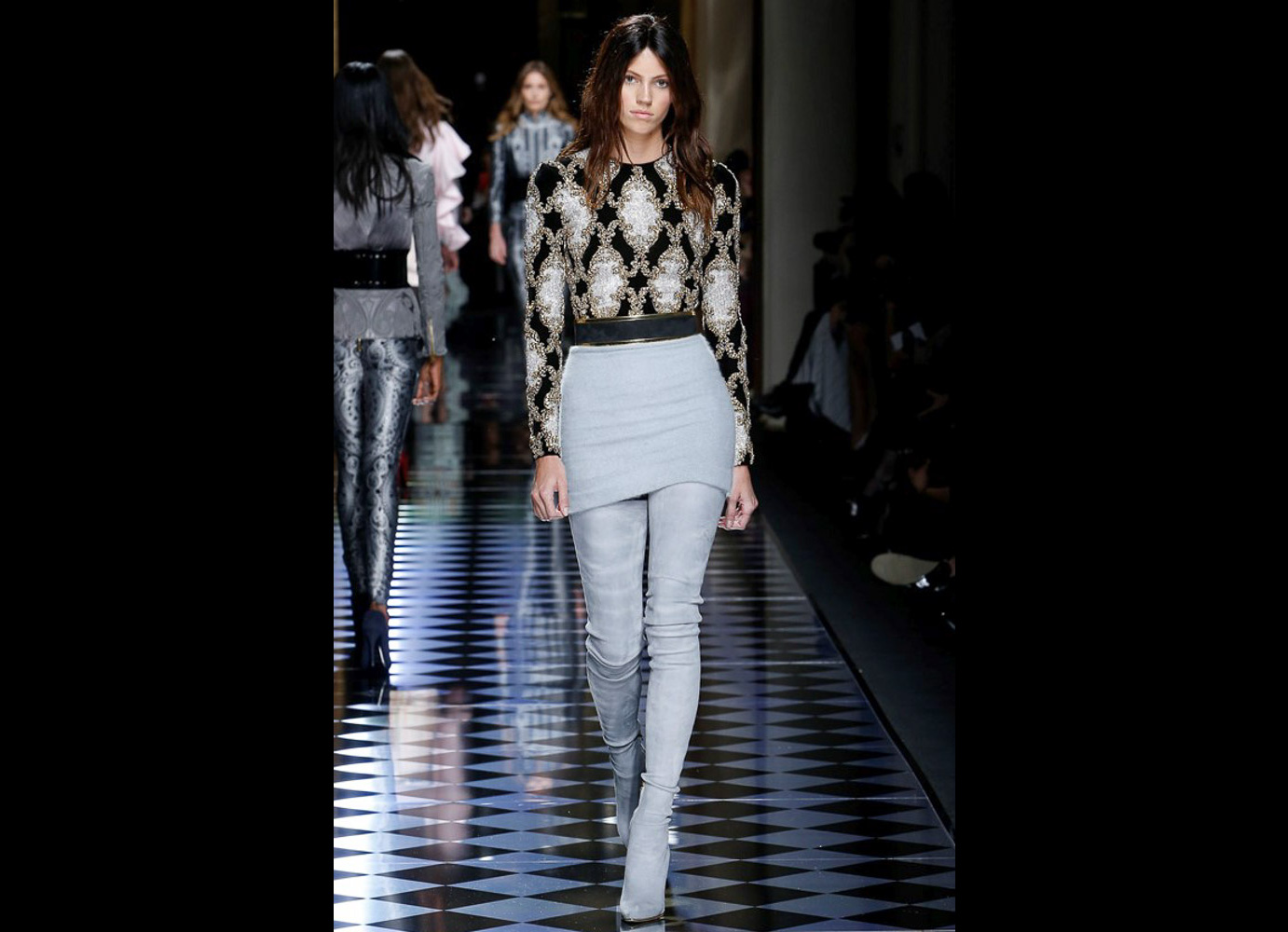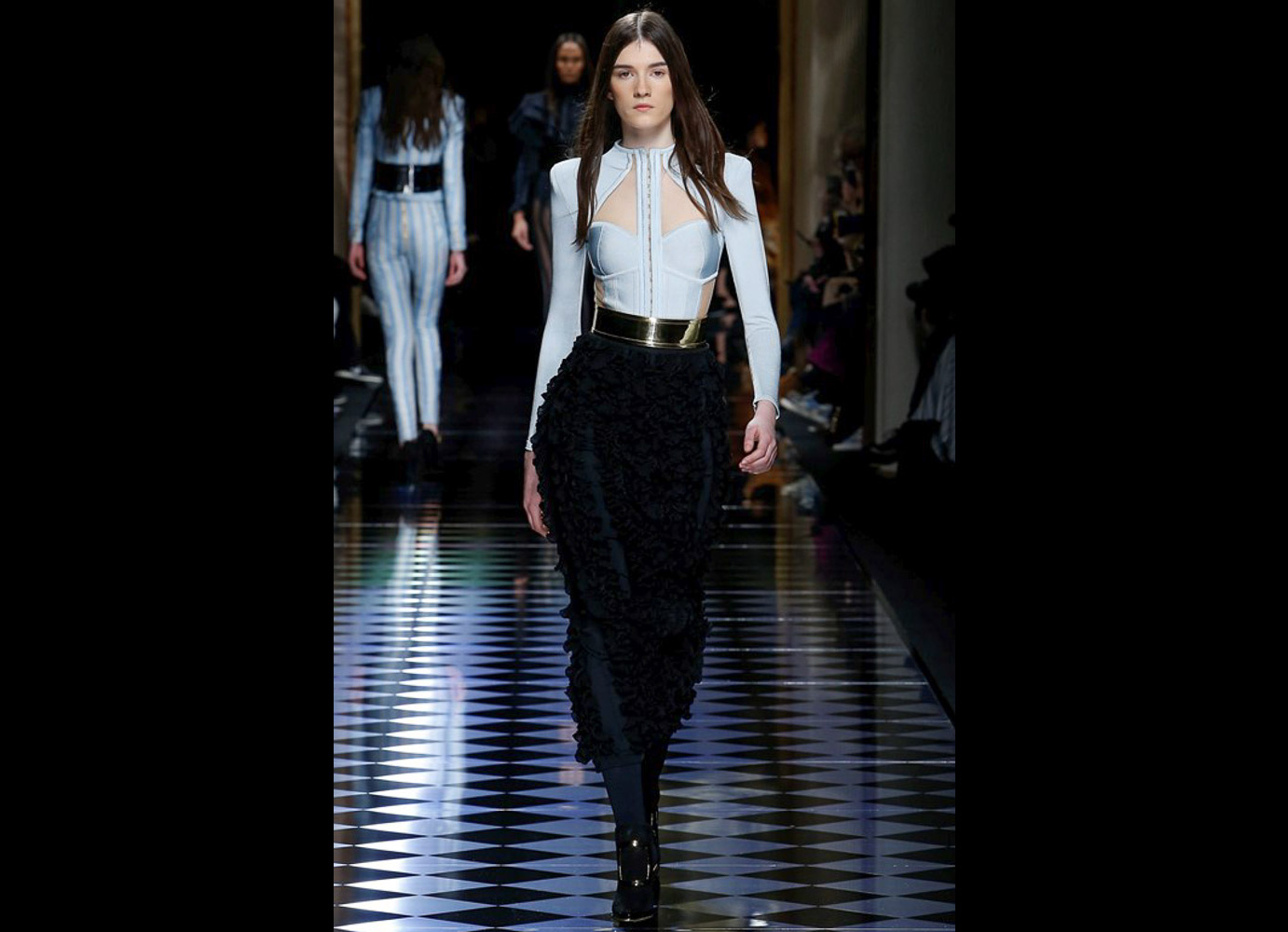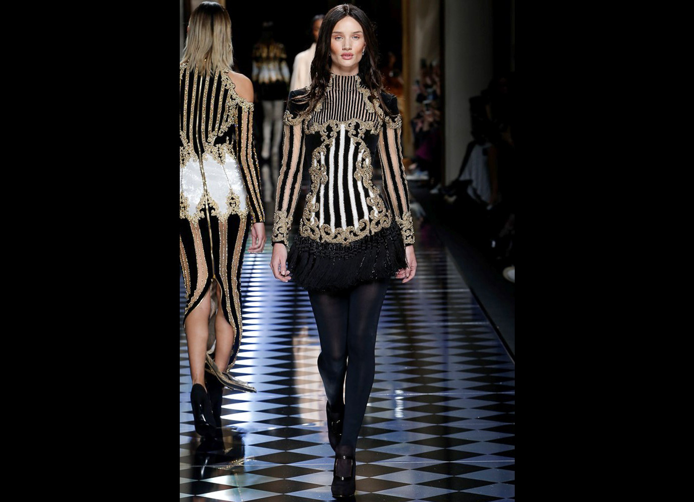 Tons pastéis em rosa e azul predominaram a passarela do desfile da Balmain ontem à tarde. Fora isso, a mídia também enlouqueceu com o fato de várias modelos trocarem a cor do cabelo, como Kendall Jenner loira e Gigi Hadid morena. O exército de Olivier também contava com a modelo britânica Rosie Huntington-Whitely, Karlie Kloss, Alessandra Ambrosio, Sara Sampaio e muitas outras. Take a look:
