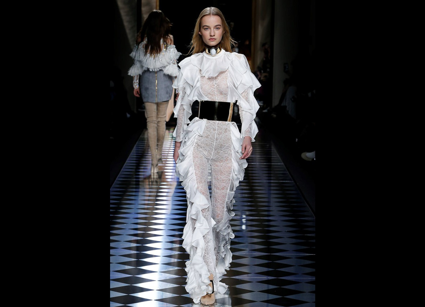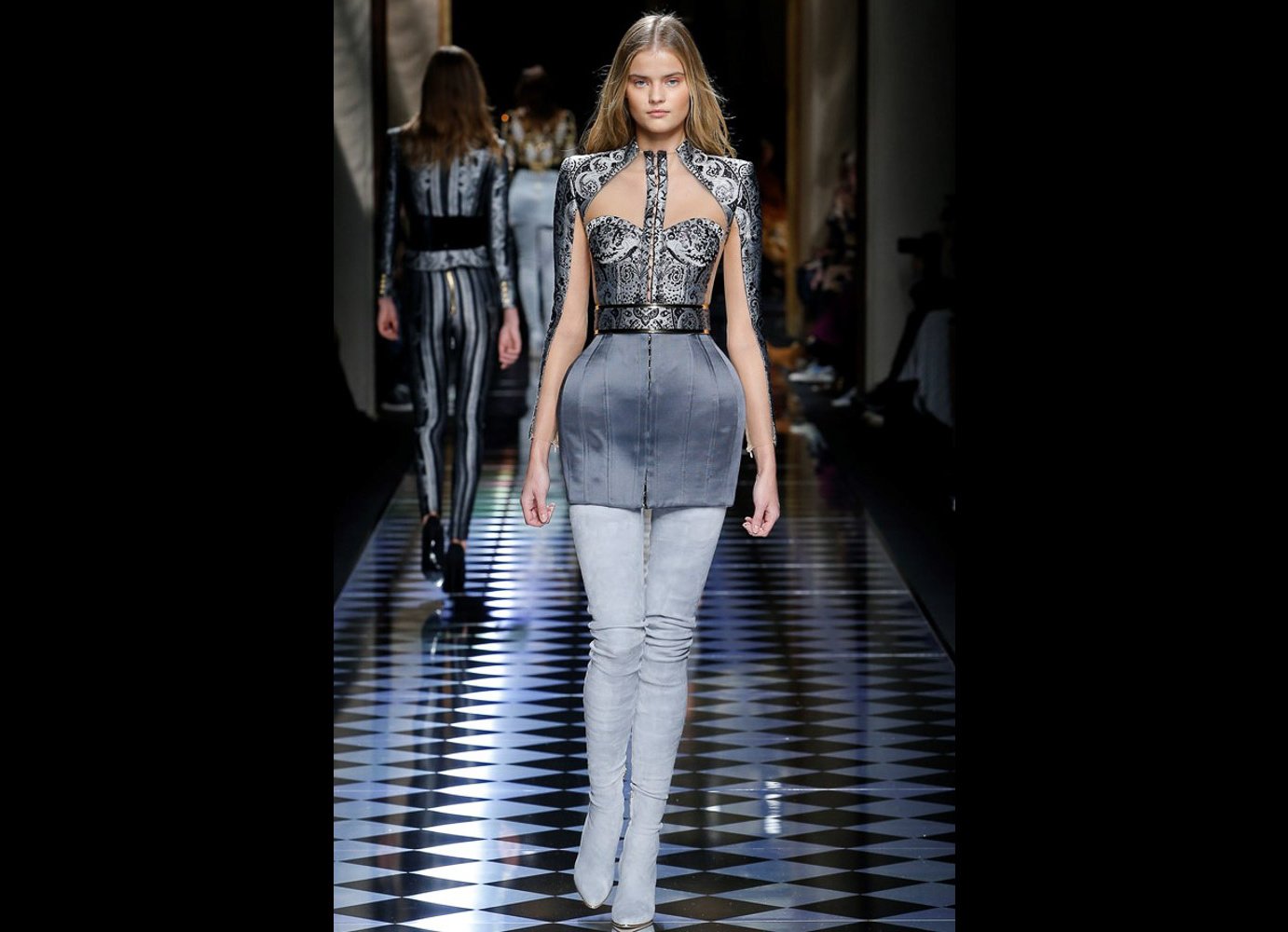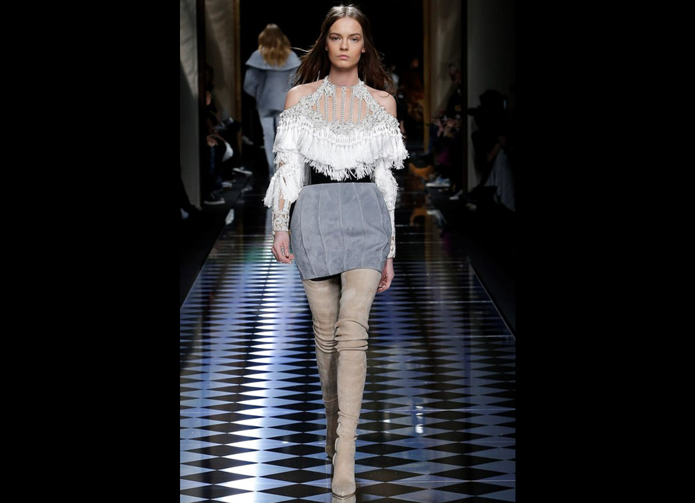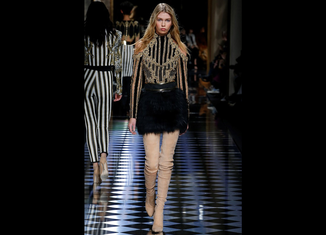 Tons pastéis em rosa e azul predominaram a passarela do desfile da Balmain ontem à tarde. Fora isso, a mídia também enlouqueceu com o fato de várias modelos trocarem a cor do cabelo, como Kendall Jenner loira e Gigi Hadid morena. O exército de Olivier também contava com a modelo britânica Rosie Huntington-Whitely, Karlie Kloss, Alessandra Ambrosio, Sara Sampaio e muitas outras. Take a look: