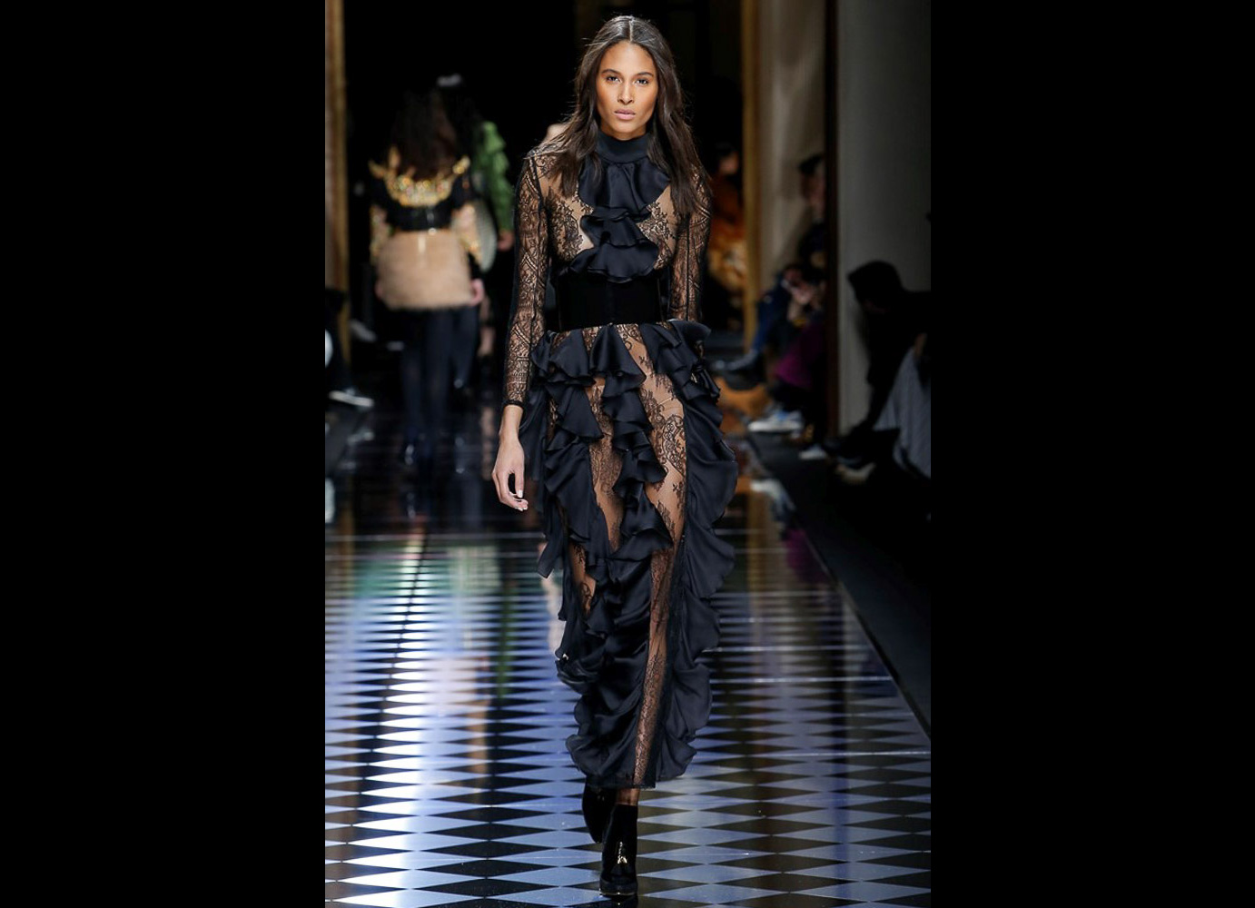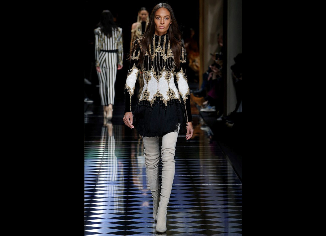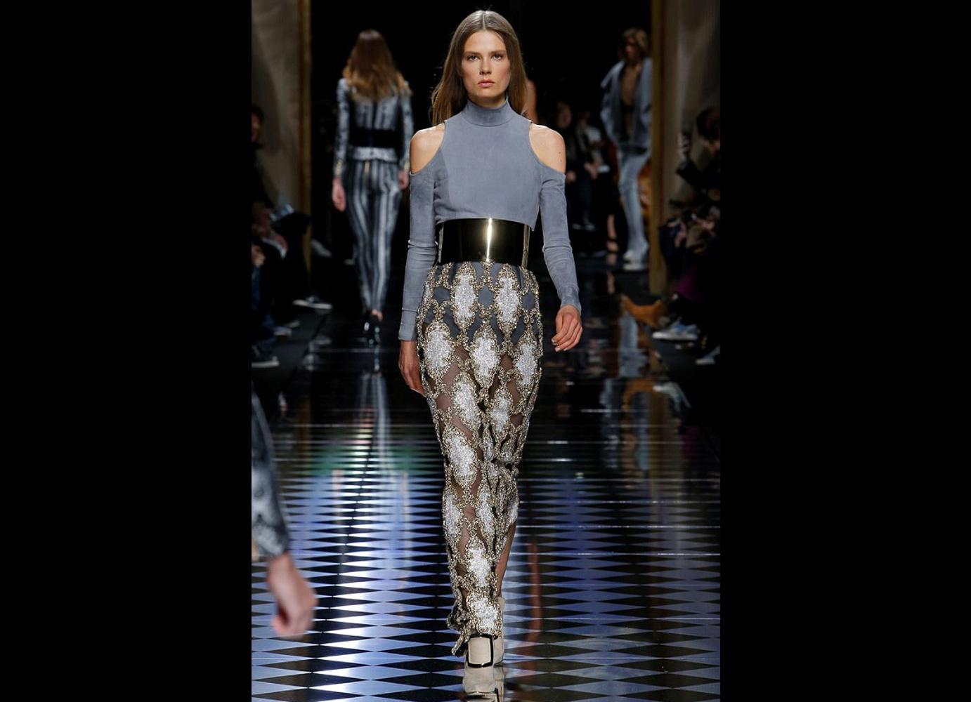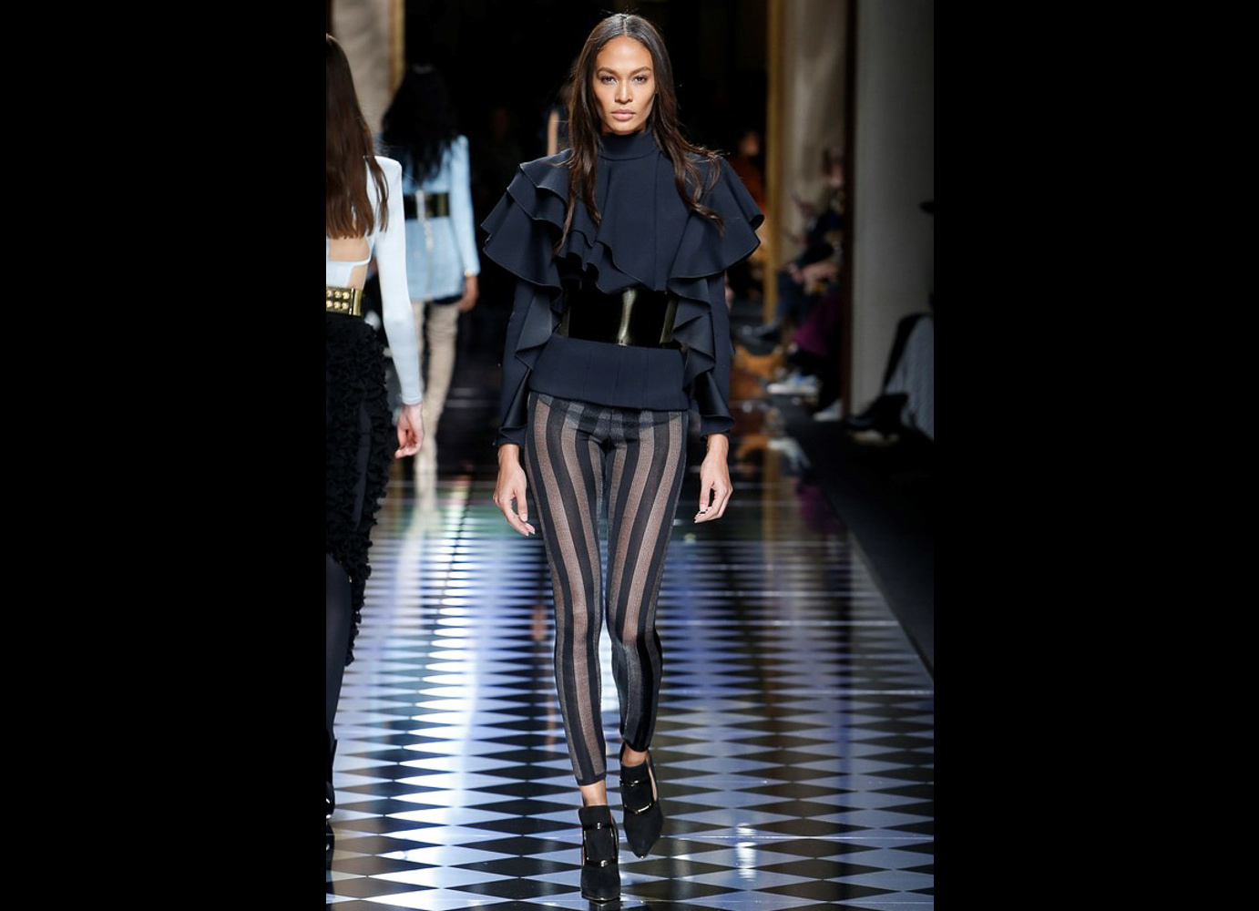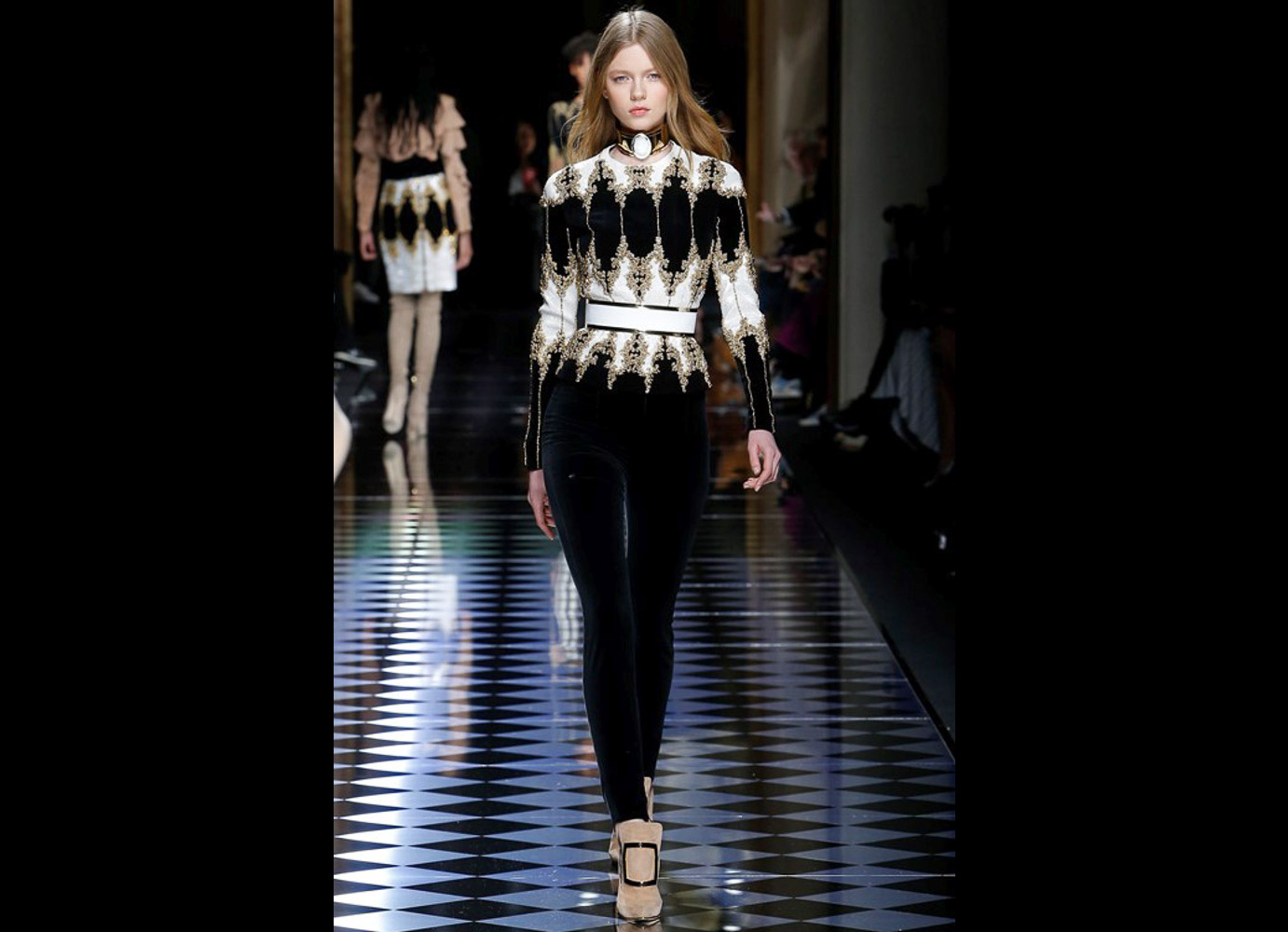Tons pastéis em rosa e azul predominaram a passarela do desfile da Balmain ontem à tarde. Fora isso, a mídia também enlouqueceu com o fato de várias modelos trocarem a cor do cabelo, como Kendall Jenner loira e Gigi Hadid morena. O exército de Olivier também contava com a modelo britânica Rosie Huntington-Whitely, Karlie Kloss, Alessandra Ambrosio, Sara Sampaio e muitas outras. Take a look: