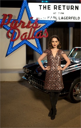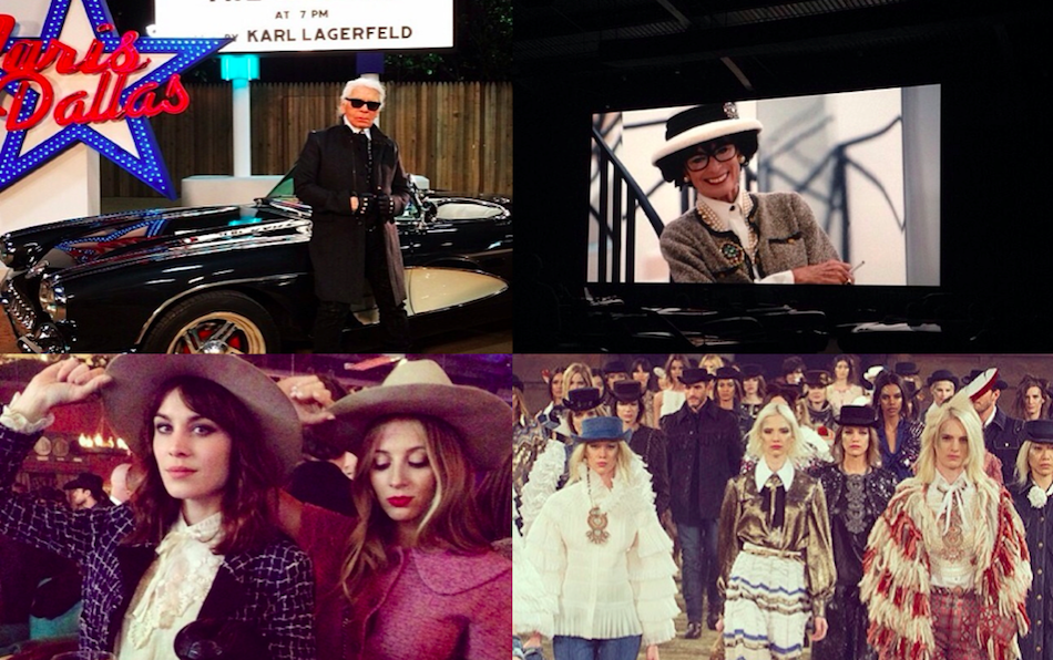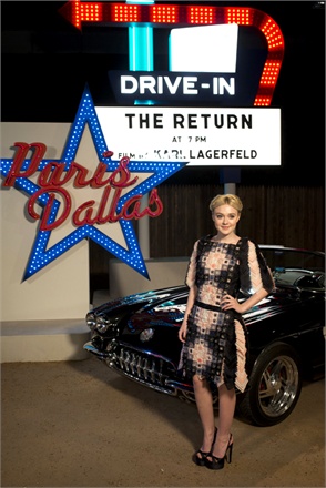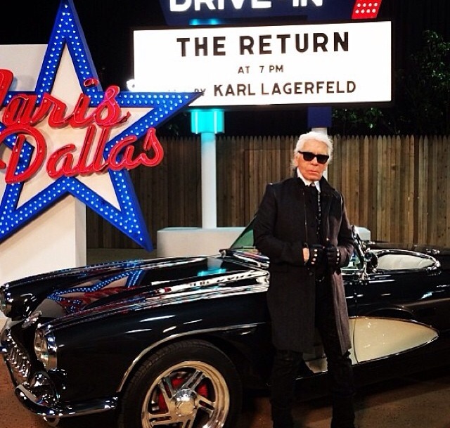 Todo inspirado no estilo texano/cowboy, o evento aconteceu no Fair Park em Dallas, imitando um drive-in onde passou o filme dirigido por Karl, ” The Return” , que traça os passos da Coco Chanel quando ela resolve re-abrir a loja de Paris em 1954, depois da II Guerra Mundial.
