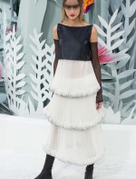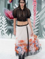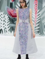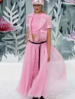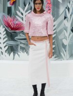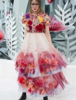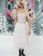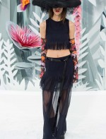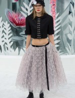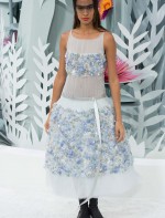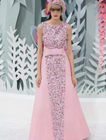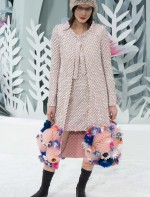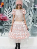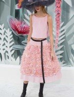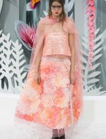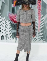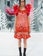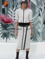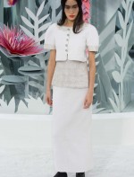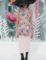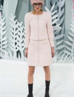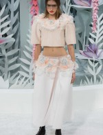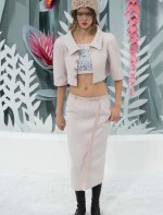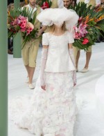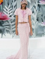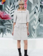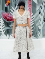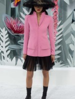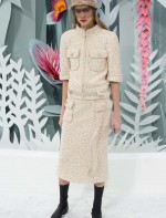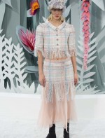 Com direito à um cenário em meio de flores, o desfile mais esperado da semana começa e as mesmas cores da decoração começam a florescer. Tons de rosa, amarelo, verde, laranja e azul invadem a passarela após um jardineiro entrar com seu regador e chapéu de palha. Looks em tweed colorido e p&b, saias, shorts e vestidos (reparem que não tinha nenhuma calça no desfile todo!) são combinados com o famoso jaquet em diferentes formatos. “Colorful and delicate” – “Colorida e delicada”, são as palavras que Karl usou para descrever sua coleção. Check it out: