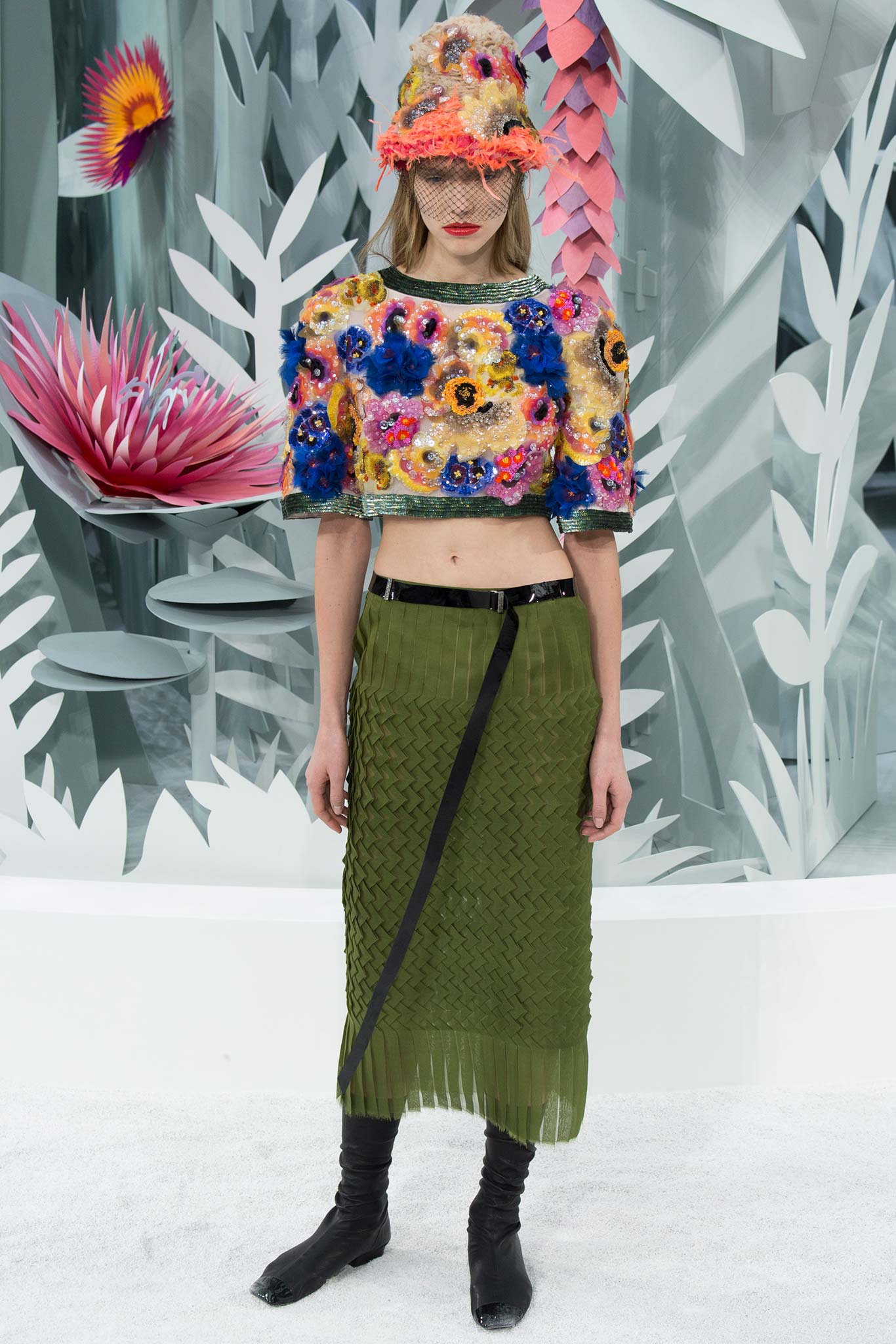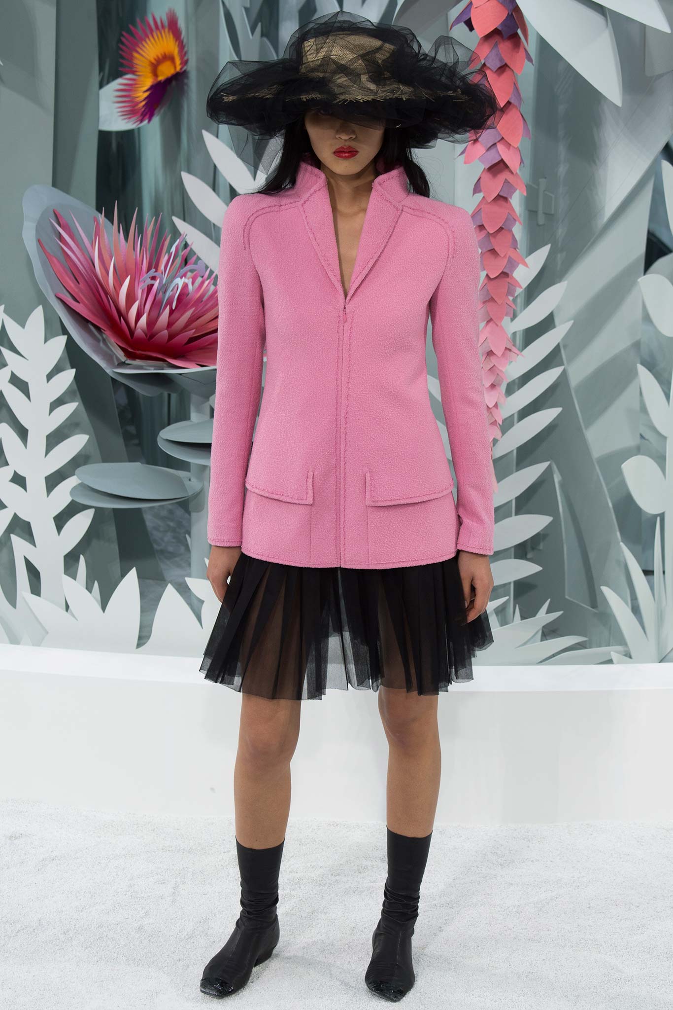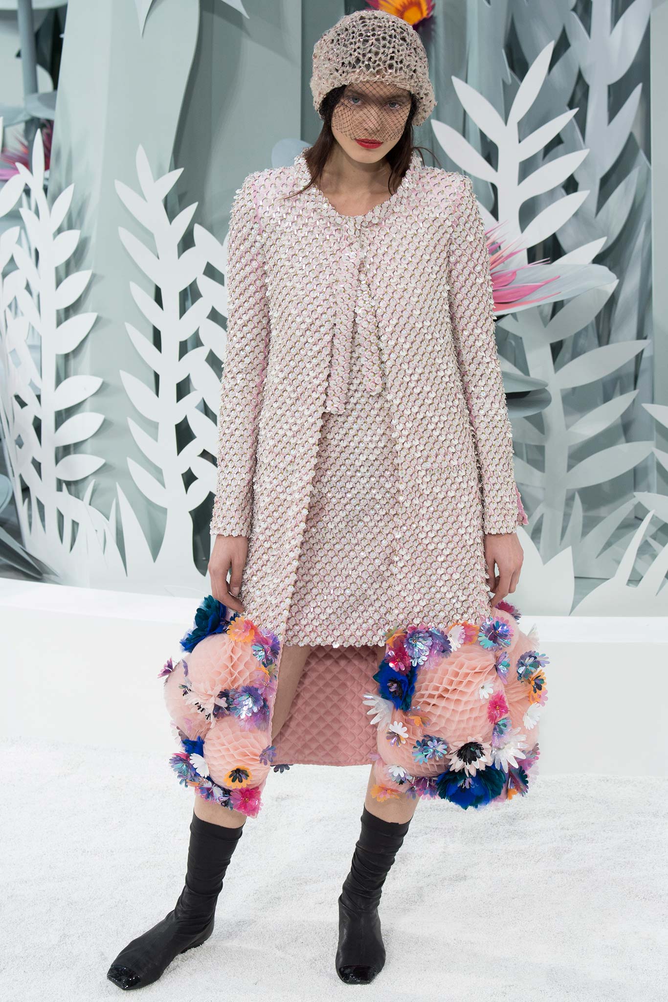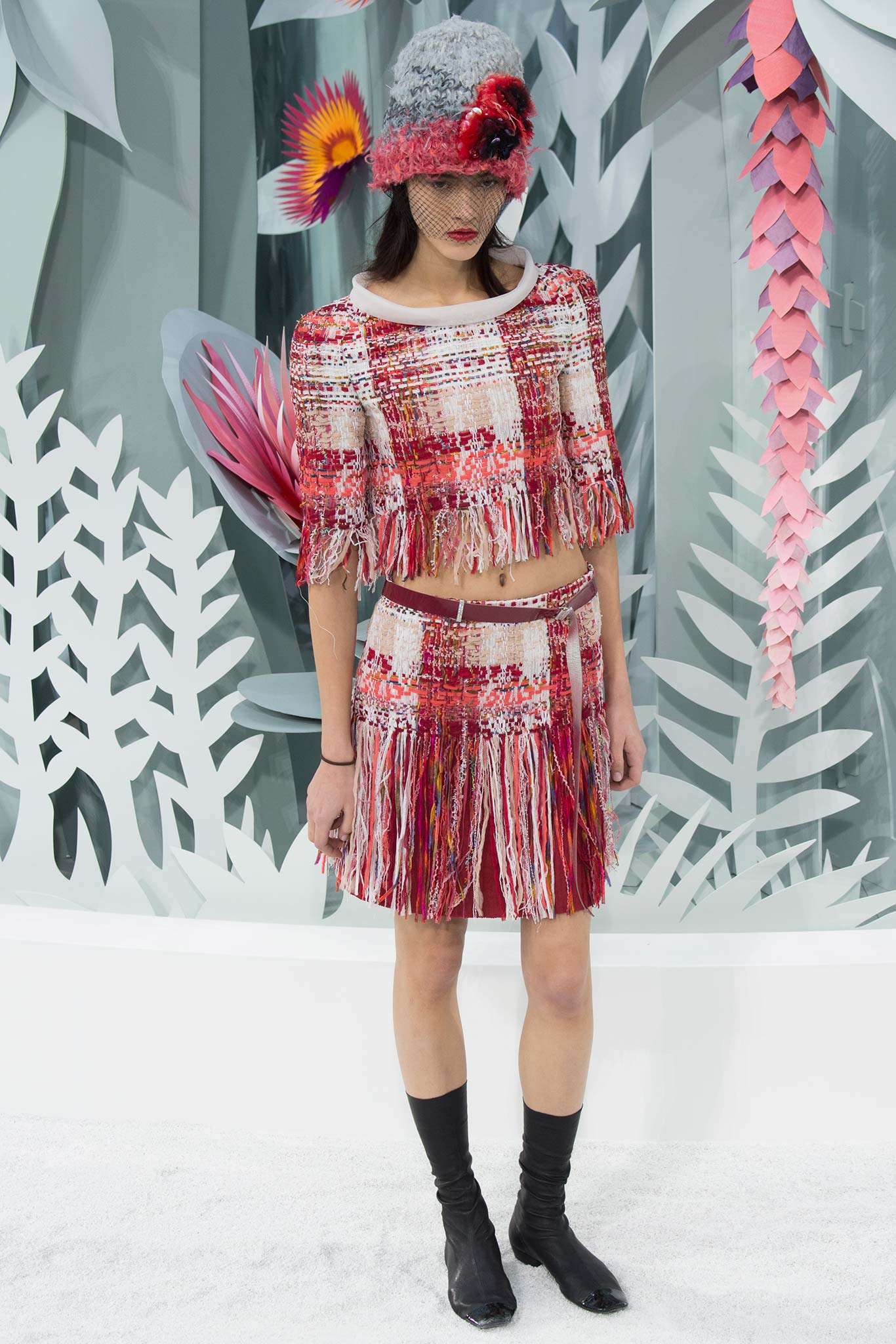 Com direito à um cenário em meio de flores, o desfile mais esperado da semana começa e as mesmas cores da decoração começam a florescer. Tons de rosa, amarelo, verde, laranja e azul invadem a passarela após um jardineiro entrar com seu regador e chapéu de palha. Looks em tweed colorido e p&b, saias, shorts e vestidos (reparem que não tinha nenhuma calça no desfile todo!) são combinados com o famoso jaquet em diferentes formatos. “Colorful and delicate” – “Colorida e delicada”, são as palavras que Karl usou para descrever sua coleção. Check it out: