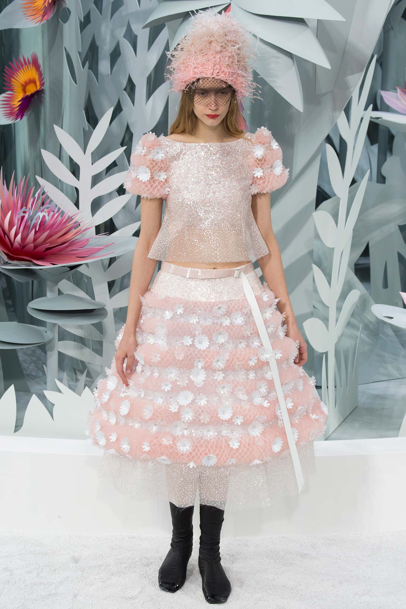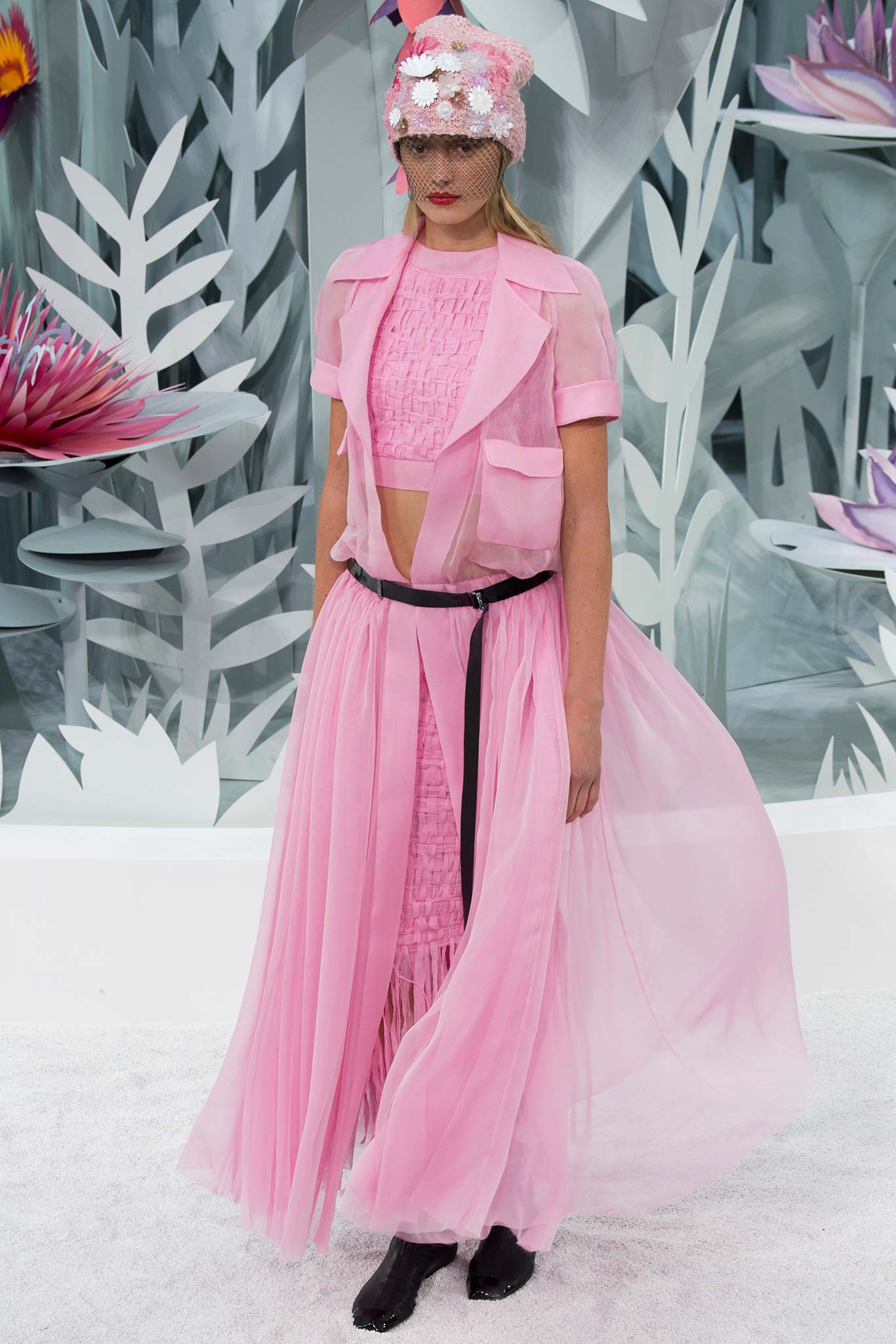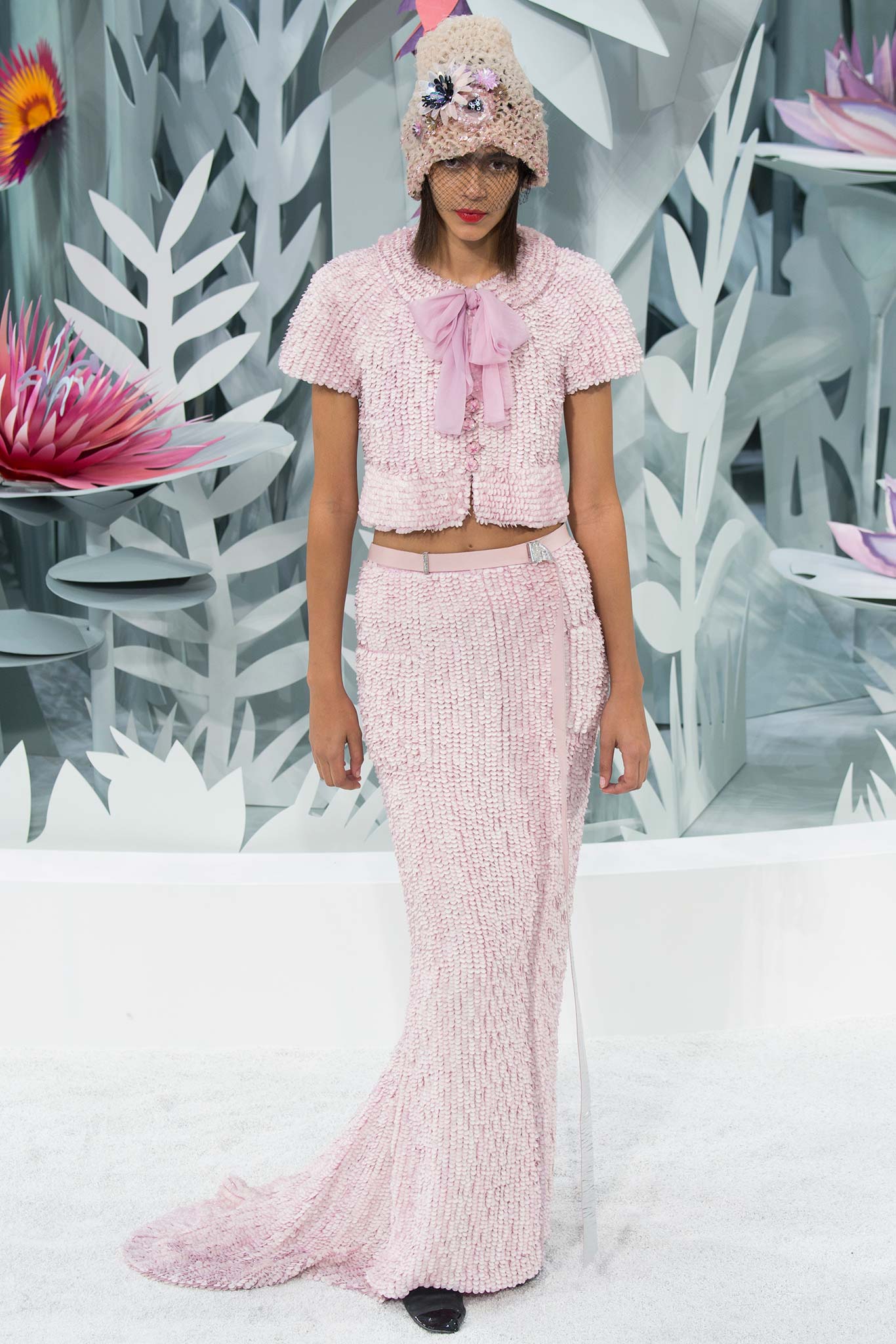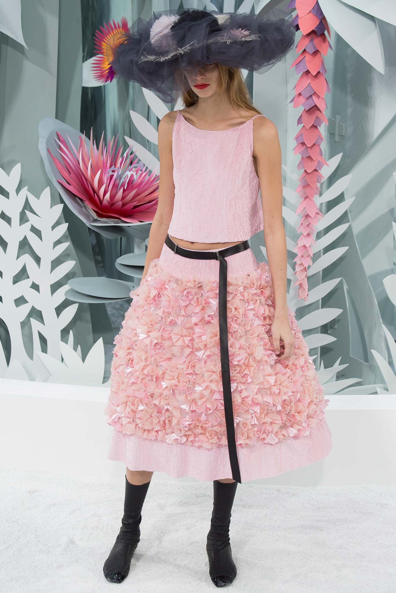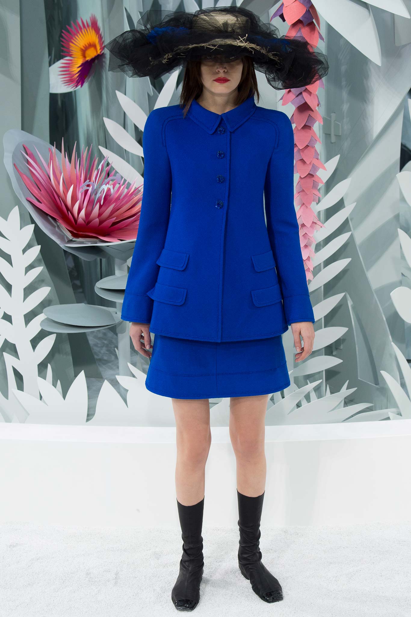 Com direito à um cenário em meio de flores, o desfile mais esperado da semana começa e as mesmas cores da decoração começam a florescer. Tons de rosa, amarelo, verde, laranja e azul invadem a passarela após um jardineiro entrar com seu regador e chapéu de palha. Looks em tweed colorido e p&b, saias, shorts e vestidos (reparem que não tinha nenhuma calça no desfile todo!) são combinados com o famoso jaquet em diferentes formatos. “Colorful and delicate” – “Colorida e delicada”, são as palavras que Karl usou para descrever sua coleção. Check it out: