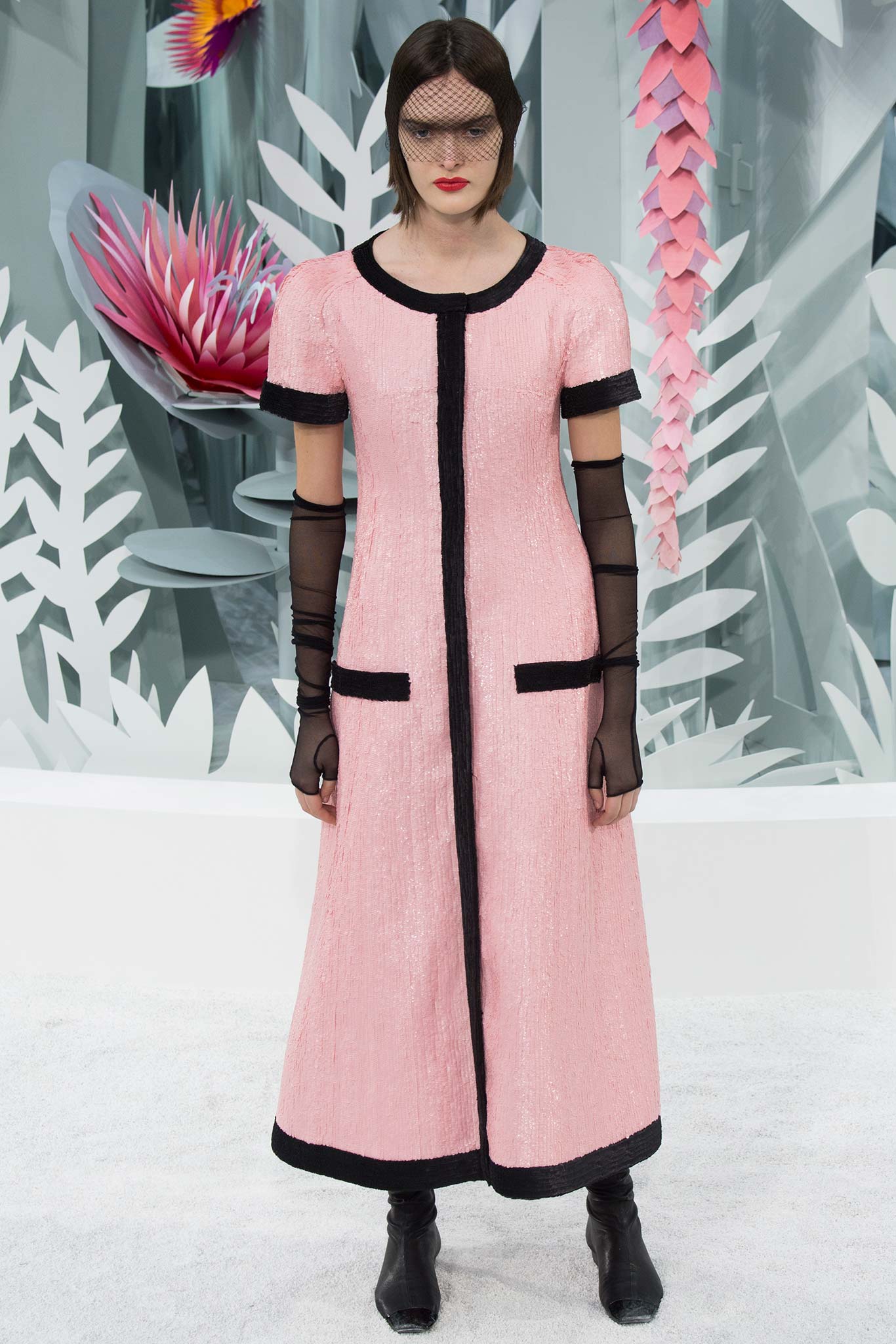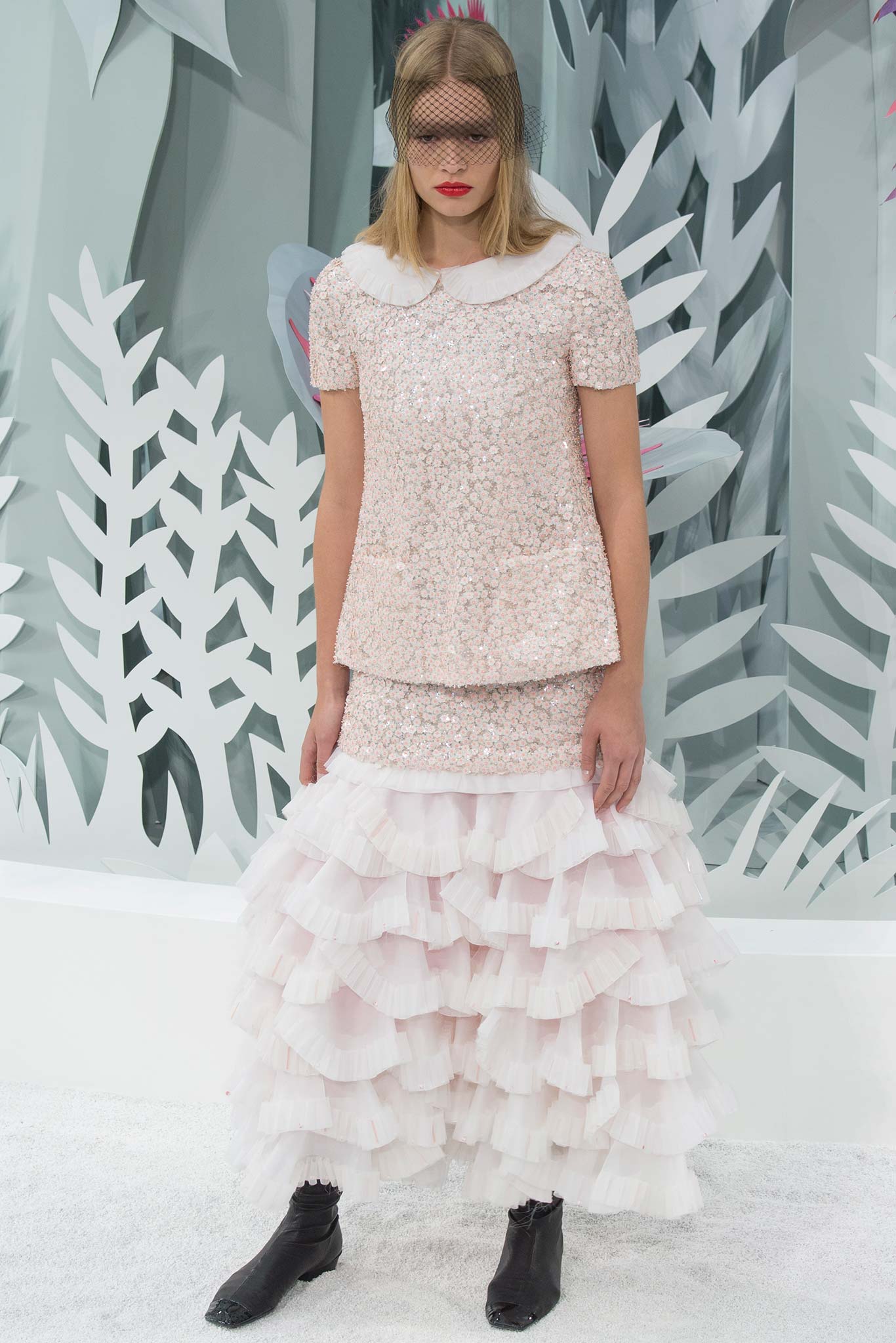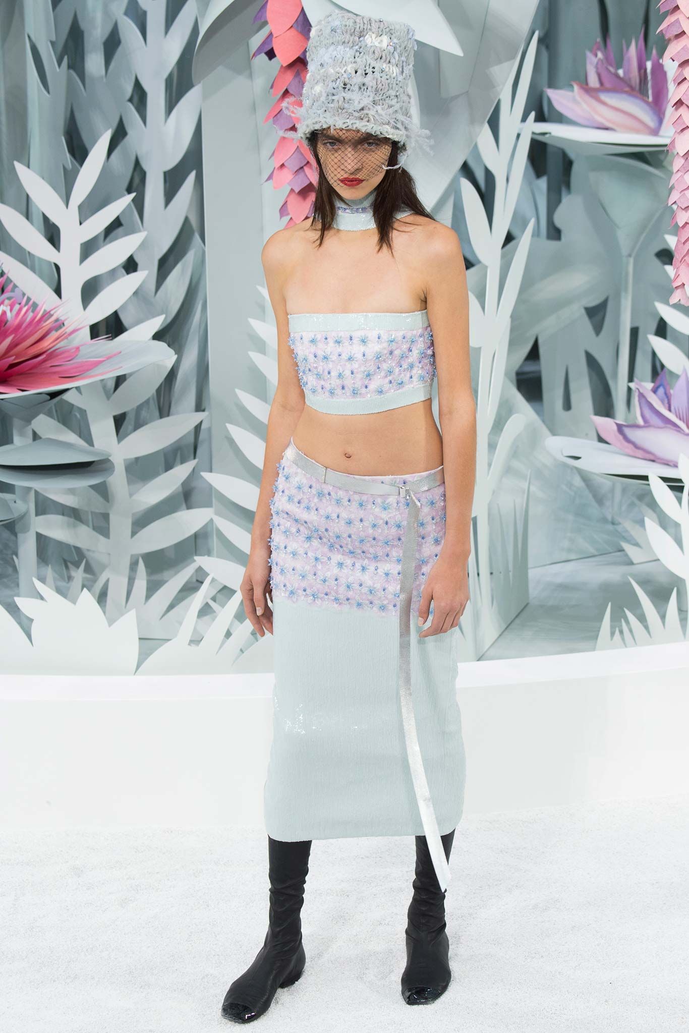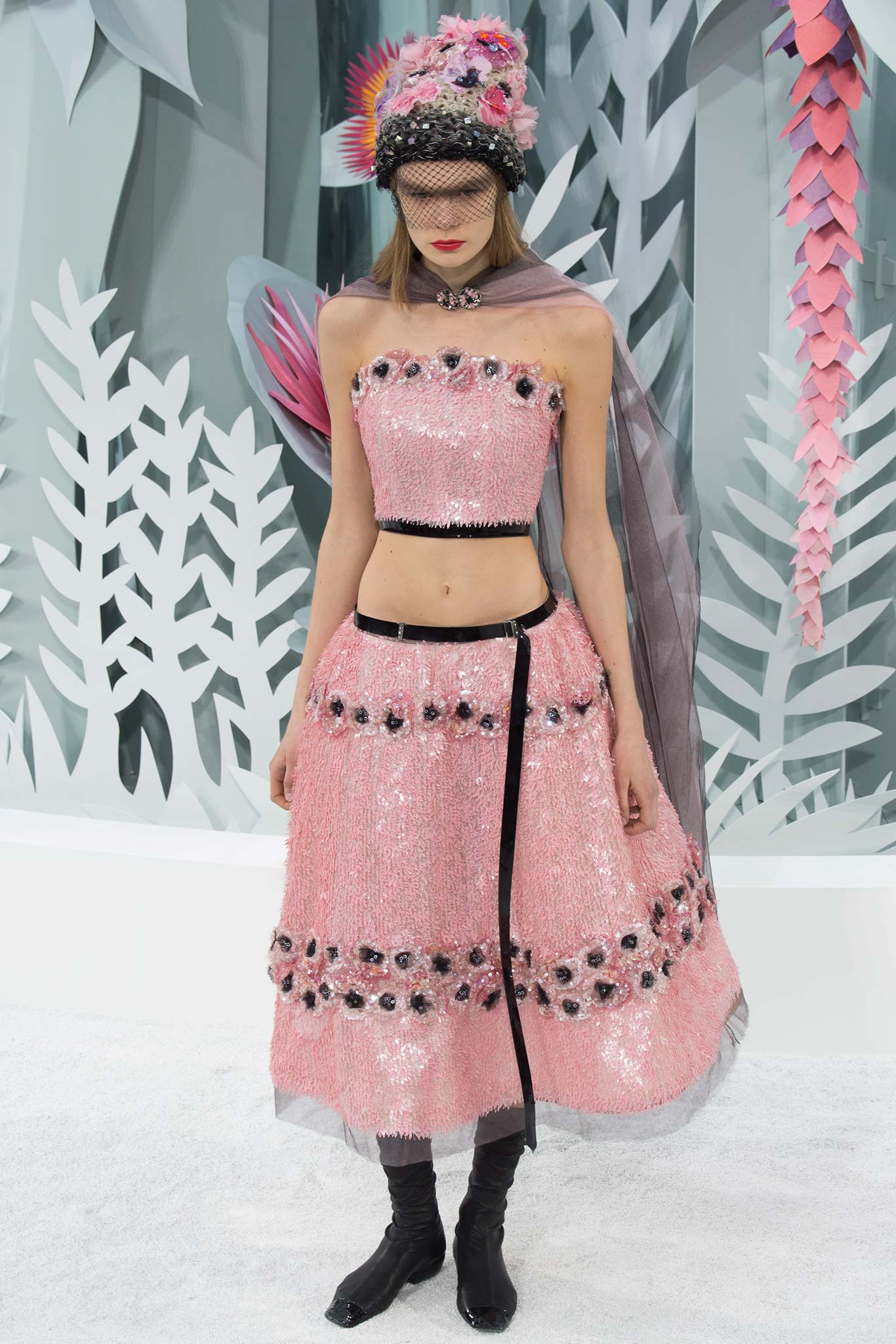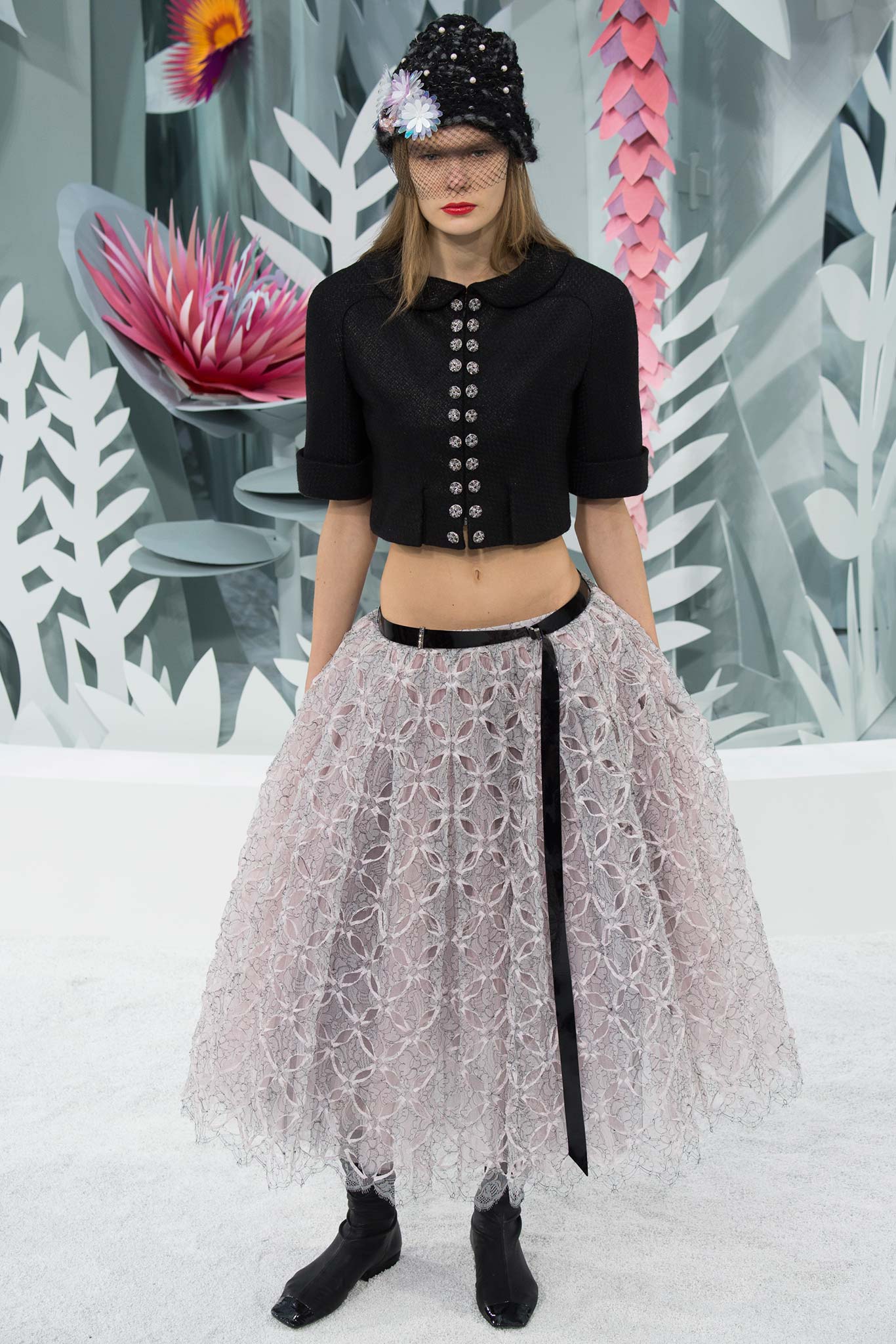 Com direito à um cenário em meio de flores, o desfile mais esperado da semana começa e as mesmas cores da decoração começam a florescer. Tons de rosa, amarelo, verde, laranja e azul invadem a passarela após um jardineiro entrar com seu regador e chapéu de palha. Looks em tweed colorido e p&b, saias, shorts e vestidos (reparem que não tinha nenhuma calça no desfile todo!) são combinados com o famoso jaquet em diferentes formatos. “Colorful and delicate” – “Colorida e delicada”, são as palavras que Karl usou para descrever sua coleção. Check it out: