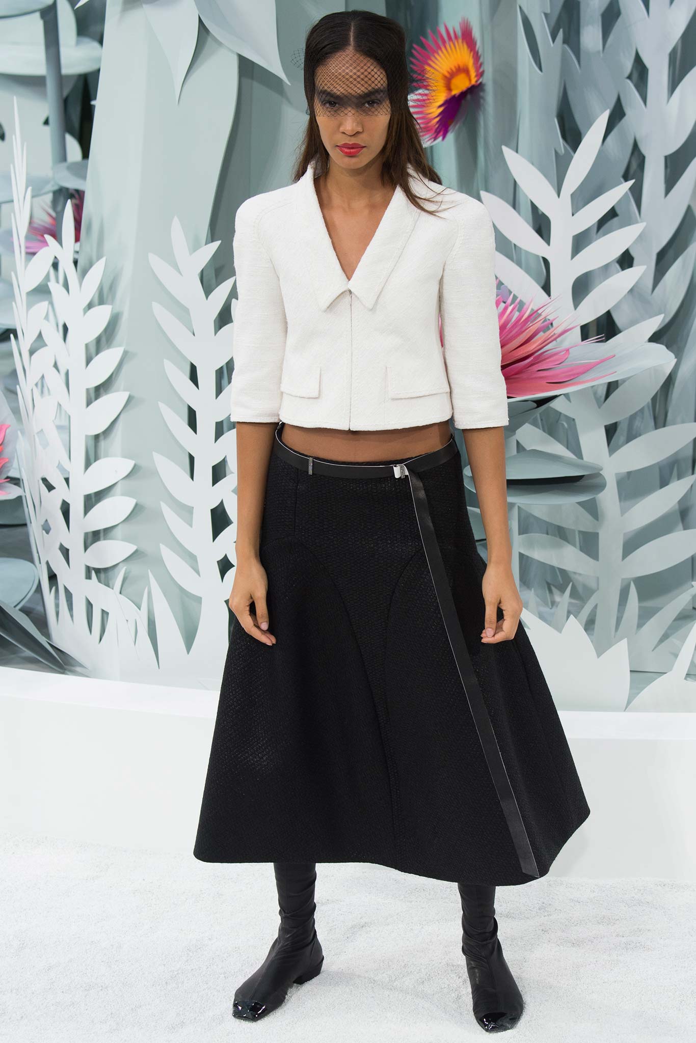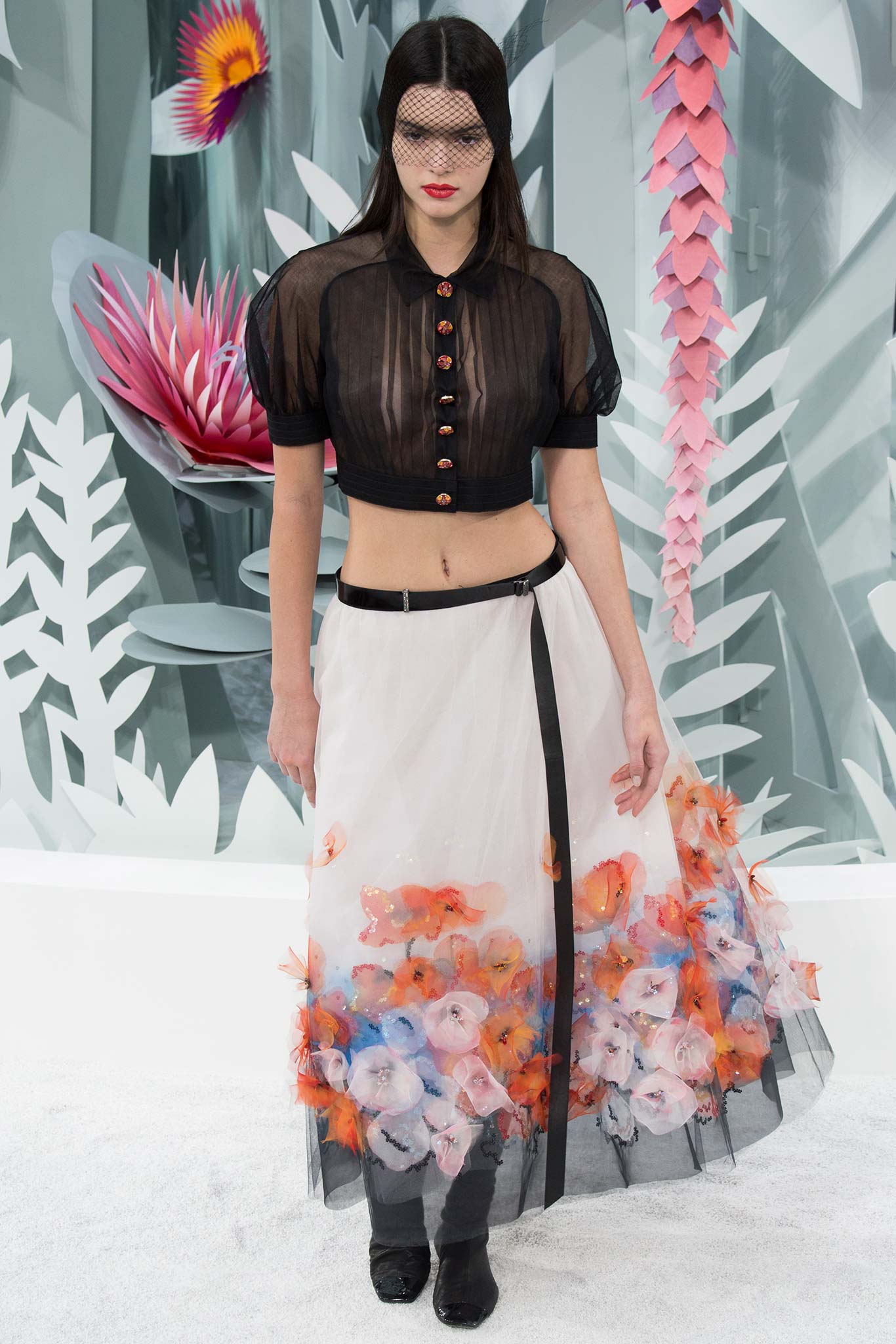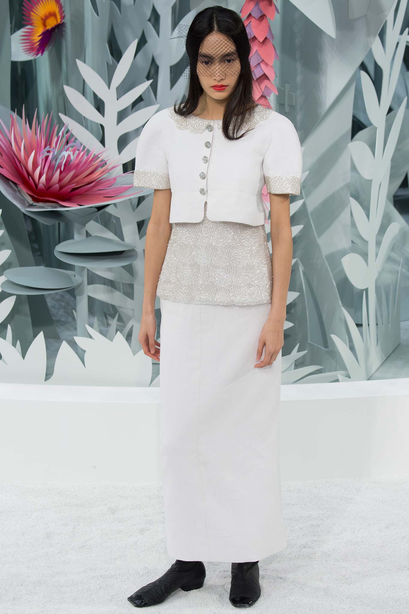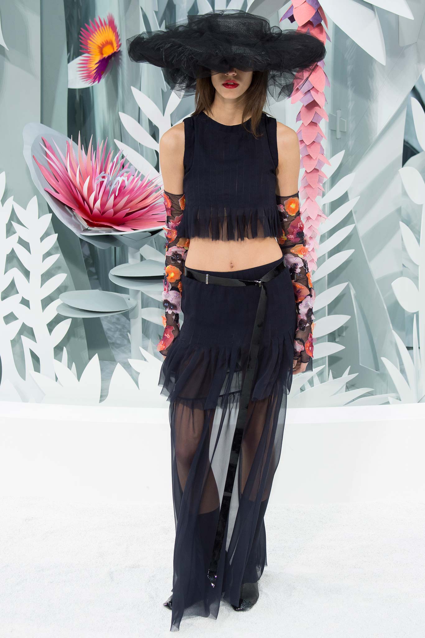Com direito à um cenário em meio de flores, o desfile mais esperado da semana começa e as mesmas cores da decoração começam a florescer. Tons de rosa, amarelo, verde, laranja e azul invadem a passarela após um jardineiro entrar com seu regador e chapéu de palha. Looks em tweed colorido e p&b, saias, shorts e vestidos (reparem que não tinha nenhuma calça no desfile todo!) são combinados com o famoso jaquet em diferentes formatos. “Colorful and delicate” – “Colorida e delicada”, são as palavras que Karl usou para descrever sua coleção. Check it out: