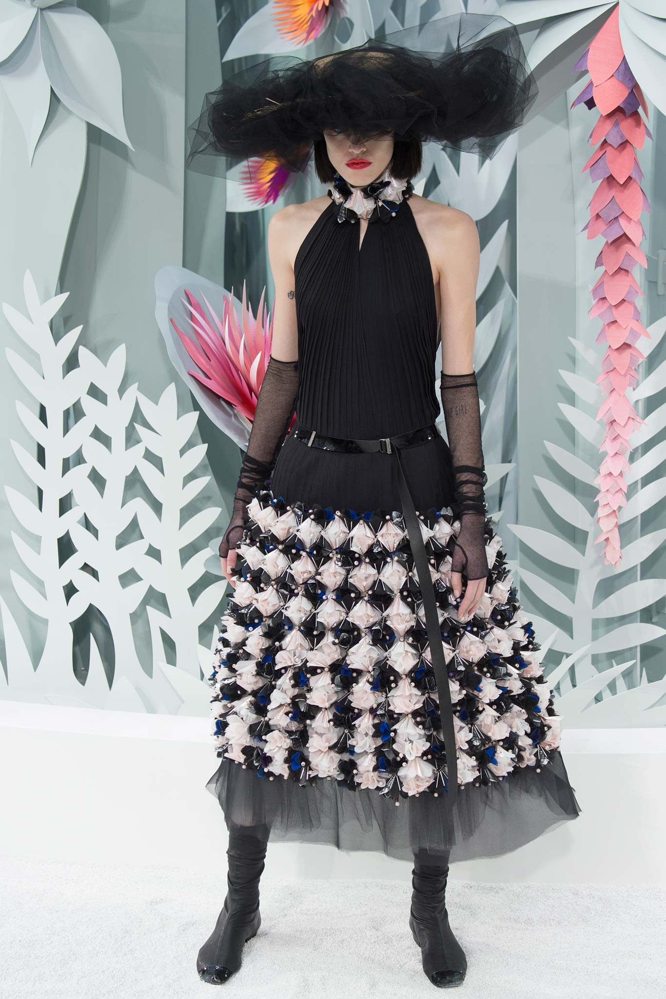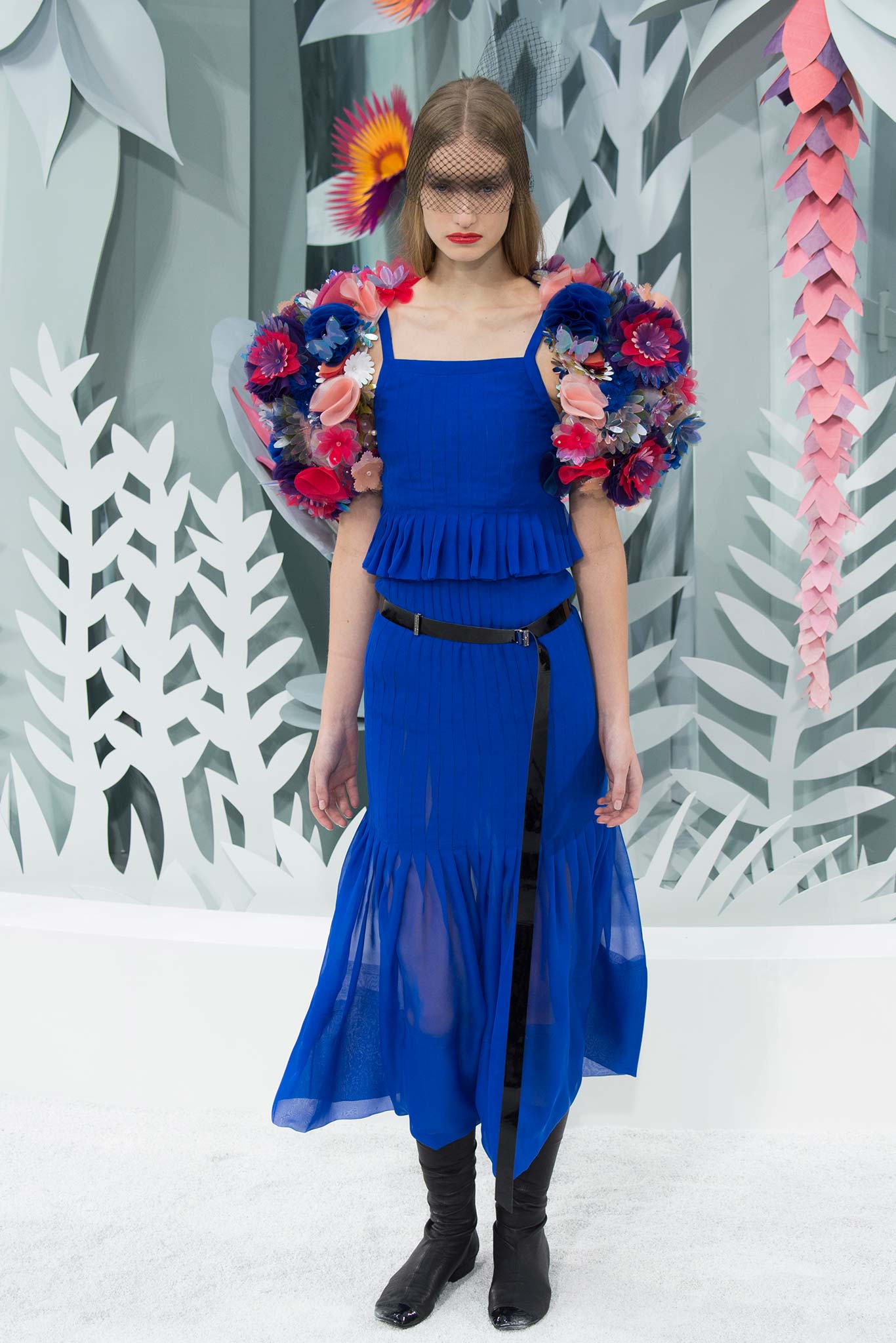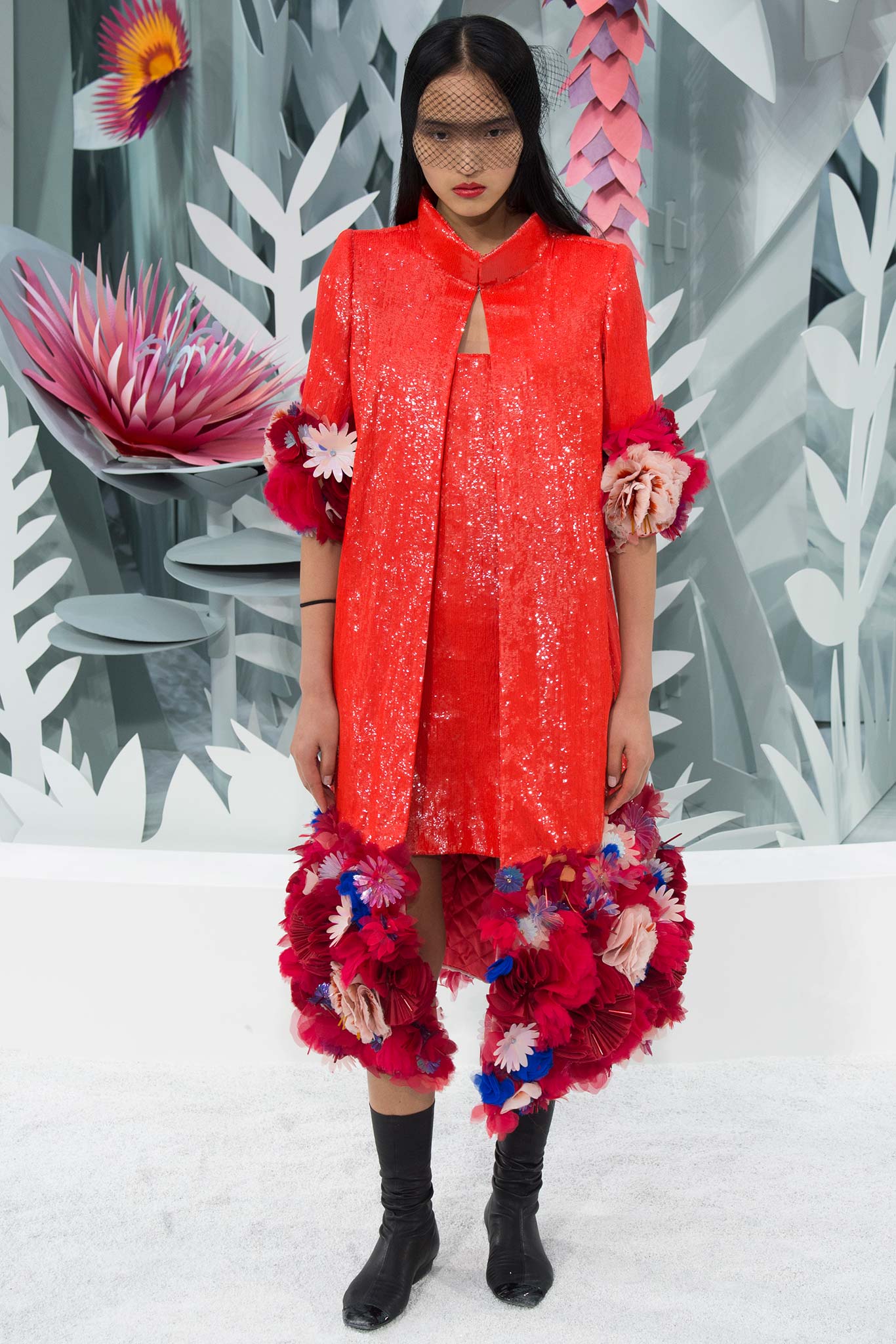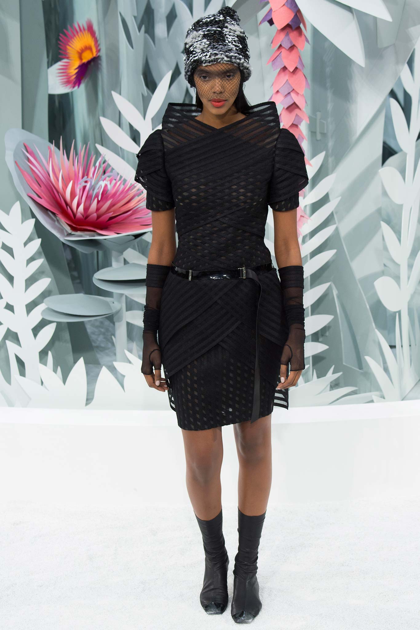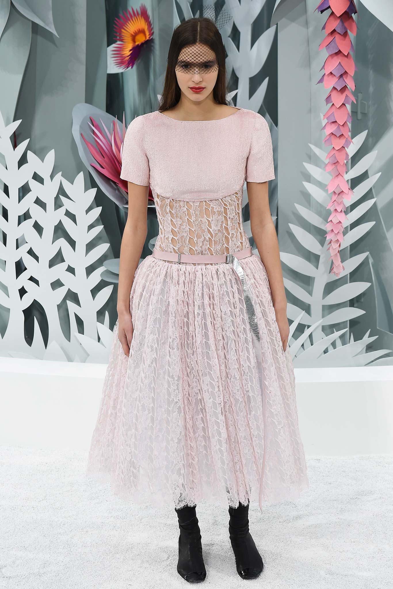 Com direito à um cenário em meio de flores, o desfile mais esperado da semana começa e as mesmas cores da decoração começam a florescer. Tons de rosa, amarelo, verde, laranja e azul invadem a passarela após um jardineiro entrar com seu regador e chapéu de palha. Looks em tweed colorido e p&b, saias, shorts e vestidos (reparem que não tinha nenhuma calça no desfile todo!) são combinados com o famoso jaquet em diferentes formatos. “Colorful and delicate” – “Colorida e delicada”, são as palavras que Karl usou para descrever sua coleção. Check it out: