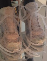 - Uma curiosidade que me contaram lá é que cada par de tênis demorou 35 horas para ser feito, e claro, à mão.