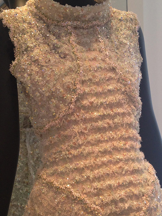 - Para finalizar a visita, tivemos uma “aula” sobre esse vestido básico que demorou 1000 horas para ser feito! Babei..a coisa mais linda..reparem que aos poucos no final do vestido começa a ter mais brilho para cobrir um pouco o corpo da mulher sortuda!
