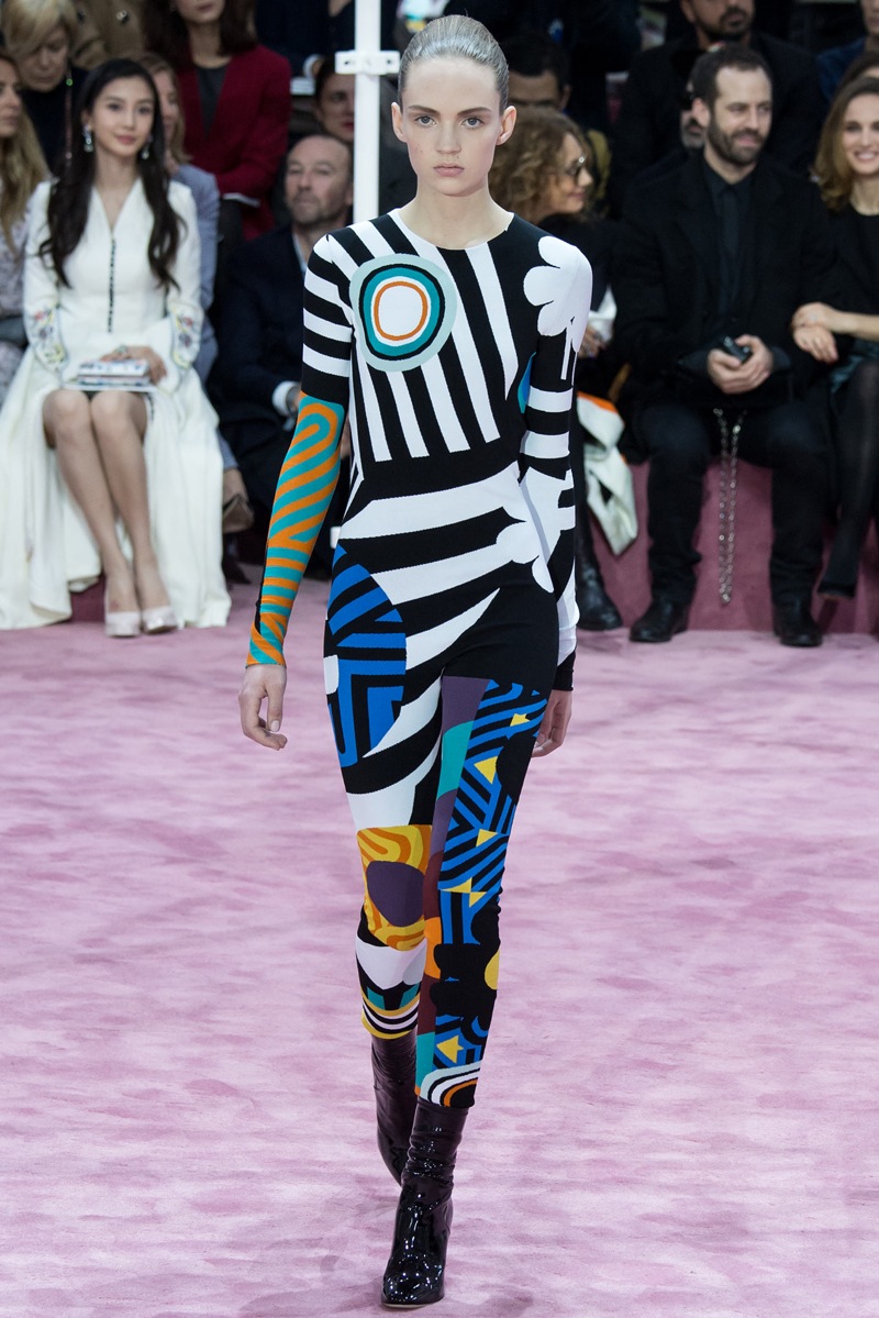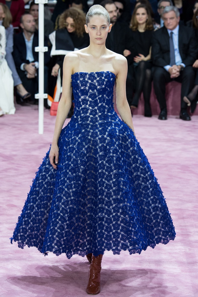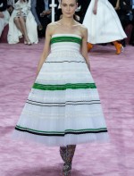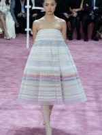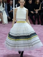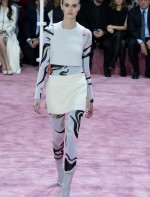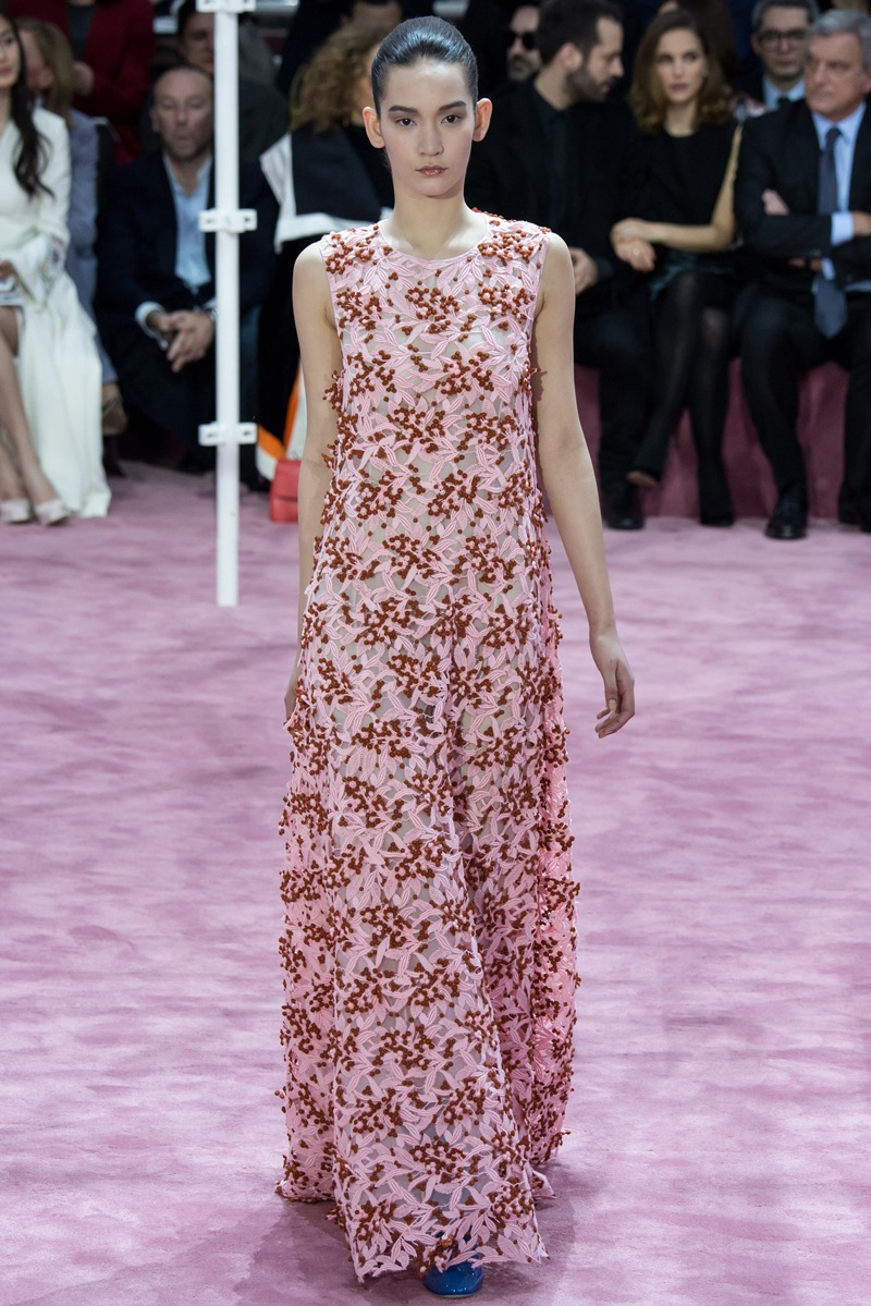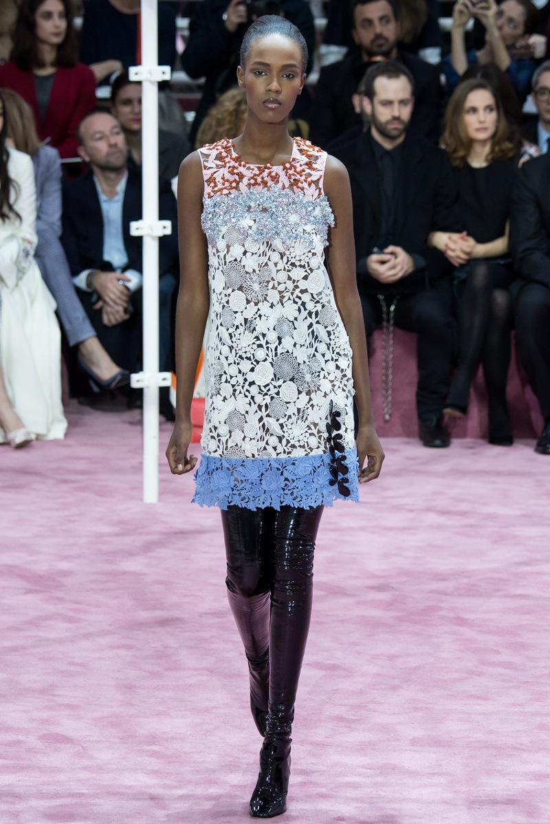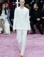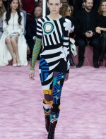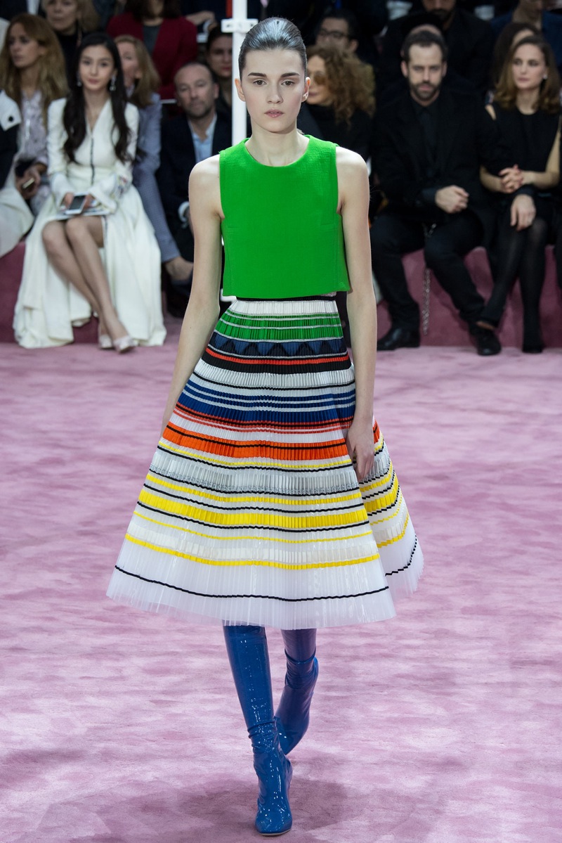 Alguém me explica o que são essas botas maravilhosas? Raf Simons só pode ser um gênio. Só ele mesmo para usar plástico na coleção Couture e fazer dar certo! Já no primeiro look do desfile Raf já nos deixa de boca aberta com seu casaco de vinil bordado ( não sei como também ) com uma pegada anos 50,60 e 70 ele mistura saias, vestidos e casacos compridos com listas, floral e muito brilho! Check it out:
