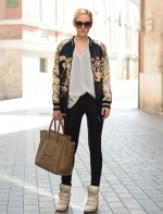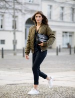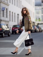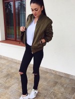 As jaquetas bomber já viraram queridinha e não pode faltar no guarda roupa! Ultimamente, elas são requisitadas nas cores mais neutras como: preto, branco e verde oliva são os tons que mais se destacam nos looks, apesar de vez ou outra encontrarmos jaquetas estampadas. A peça tem o poder de dar um toque informal à composição, e muitas vezes aparece acompanhada de saias lápis, calças de alfaiataria e saltos altos. Ela se torna um elemento inusitado nas roupas mais formais, deixando o look mais interessante.