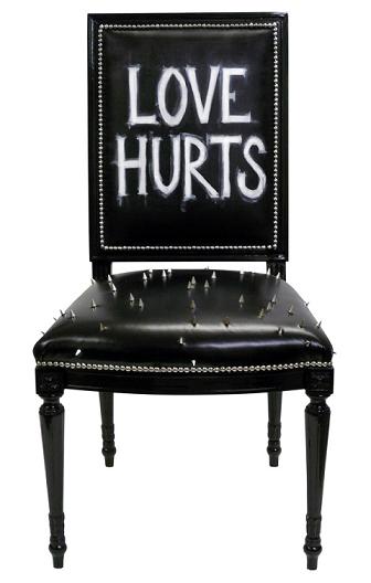 Postei essa semana uma nota sobre a loja de decoração Maison 24, que fica em Nova York e é incrível. Quando entrei na loja pela primeira vez dei de cara com uma cadeira absurdamente linda com a frase “Love Hurts” escrita no encosto, e no assento havia tachas por todos os lados. Foi amor à primeira vista! Vamos combinar que esse objeto não é dos mais práticos, porque quem vai sentar numa cadeira com tachas? Mas até aí tudo bem, viva o design e suas experimentações…
