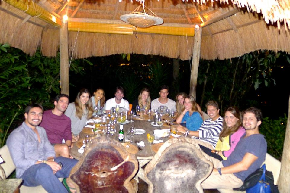 Chegamos às 4 da tarde e por ali ficamos. Como choveu muito, pegamos um espaço que mais parecia um bangalô e só saímos de lá depois das oito da noite. Comemos pão de queijo recheado com linguicinha, palmito pupunha e pastéis de queijo e carne – tudo uma delicia! Sem contar nas caipirinhas e cleriquot que tomamos antes do jantar chegar: moqueca! E olha que a gente nem estava com fome, ainda mais depois de tantos aperitivos.
