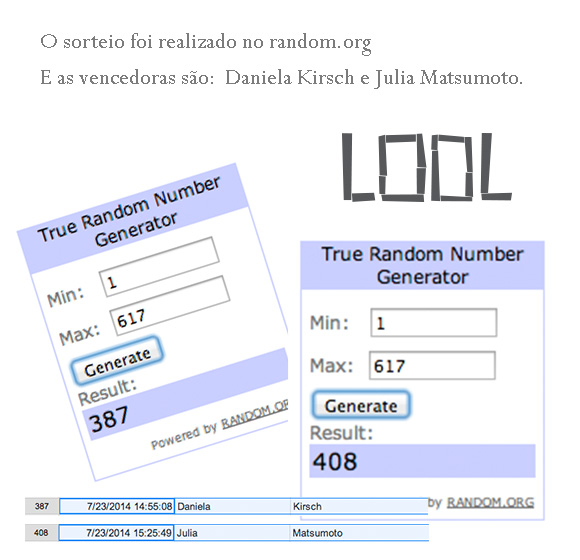 Sorteamos os nomes das sortudas utilizando o random.org e já temos nossas vencedoras da promoção Lool:
