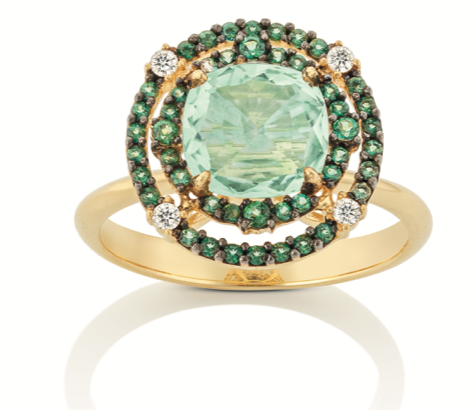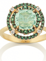 Uma das escolhas da Helena junto com a joalheria para a sua linha, foi o uso da pedra esmeralda, que tem tudo a ver com o tema da coleção: proteção.
