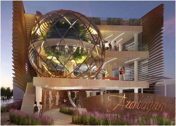 Os pavilhões contarão com 25 hectares de área. O local é próximo do centro da cidade, do aeroporto e da estação de trem, e com rápido acesso às estradas. A construção dos pavilhões começou em abril de 2014 com 20 empresas do Cazaquistão e 49 do resto do mundo.