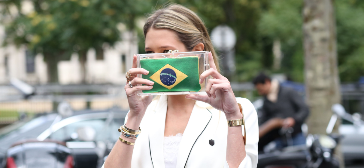 Se engana quem pensa que as cores da bandeira do Brasil é usado apenas em momentos pontuais do ano, como eventos esportivos. E vamos mostrar alguns looks que podem ser usados em diversas ocasiões e deixar o visual com uma cara mais fun! Como nesse look abaixo onde a Helena usou uma clutch com a bandeira da Charlotte Olympia, super fun e descolado!