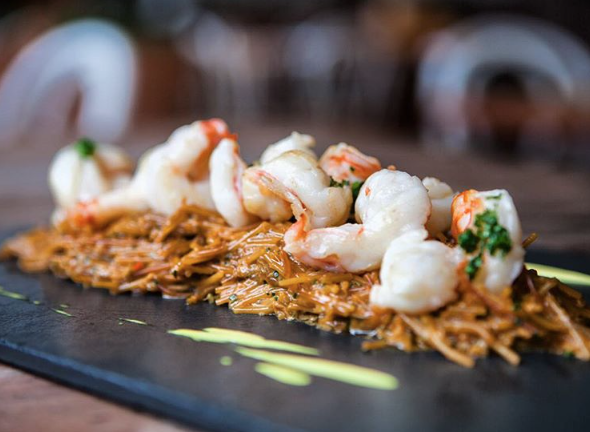 Uma das especialidades da casa é a Fideuá de Lagostim ou Fideuá de Camarão; eles trazem esse prato da tradição familiar da região do mediterrâneo espanhol. Nada mais é que uma espécie de paella, mas feita com massa. É um prato para pedir duas vezes e repetir de tão delicioso!