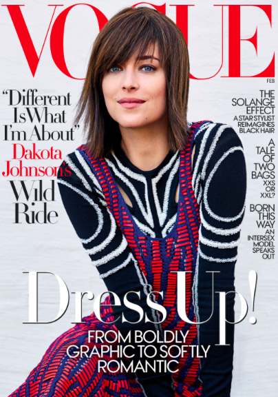 A Vogue UK de Fevereiro teve como estrela da capa a atriz Dakota Johnson.