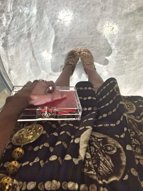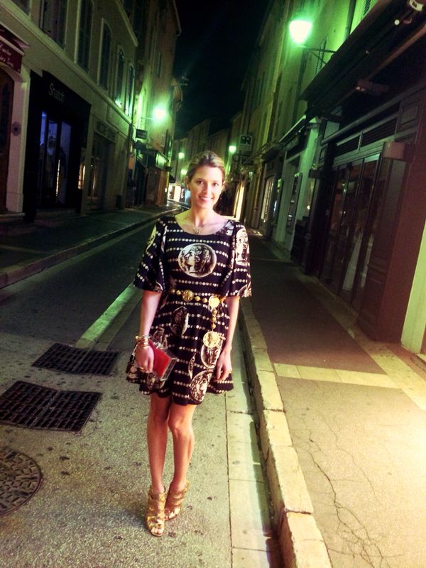 Para jantar no restaurante L´Escale, eu usei look com vestido e cinto Dolce & Gabbana, clutchj Charlotte Olympia e salto Christian Louboutin!