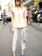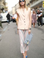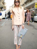 Look com calca Cris Barros, colete Maje, scarpin Schutz, bolsa Prada, braceletes camila klein e óculos Fendi.