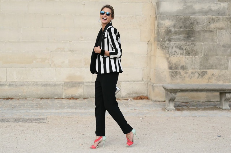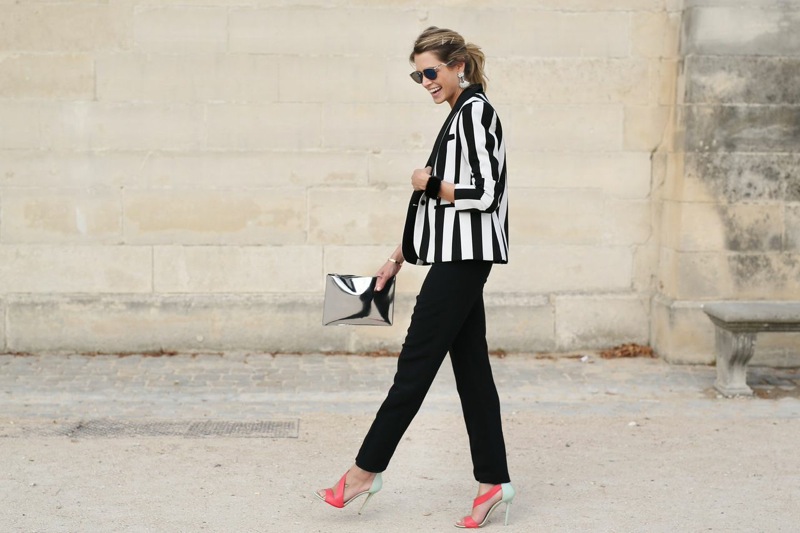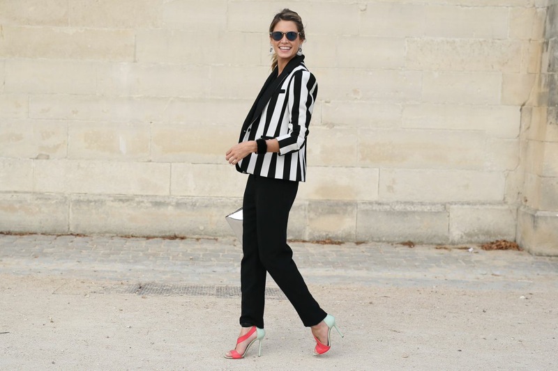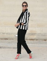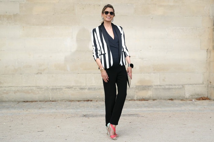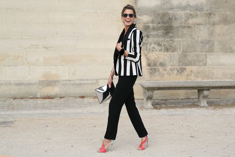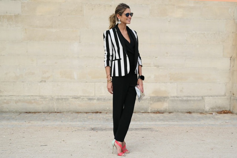 Look com macacão Elie Saab, casaco Maje, sandália Elie Saab, óculos Dior, pulseira Fendi, brinco Camila Klein, bolsa Céline.