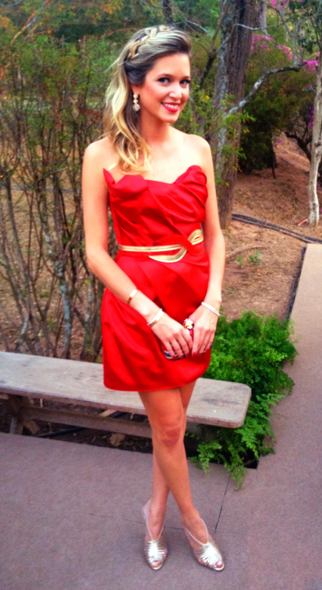 Cabelo de diva!!! O vermelho ficou superbem, mas deixaria a clutch para outra ocasião. Como um todo tá linda bj