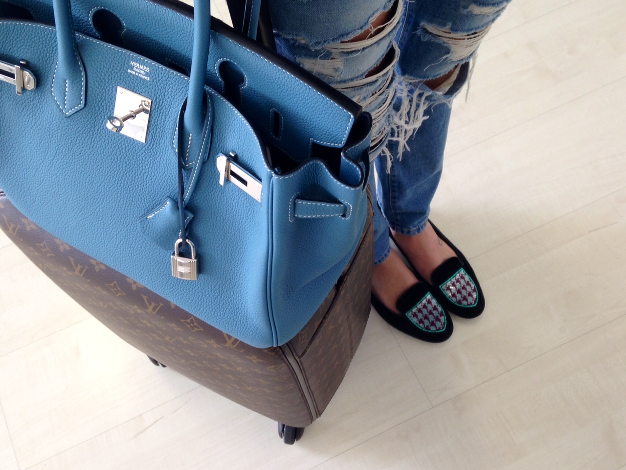 Look aeroporto sempre tem que ser confortável e quentinho! Calça Current/Elliott, malha de cashmere, jaqueta de couro Cle, cachecol e mala Louis Vuitton e bolsa Hermes! Gostaram?