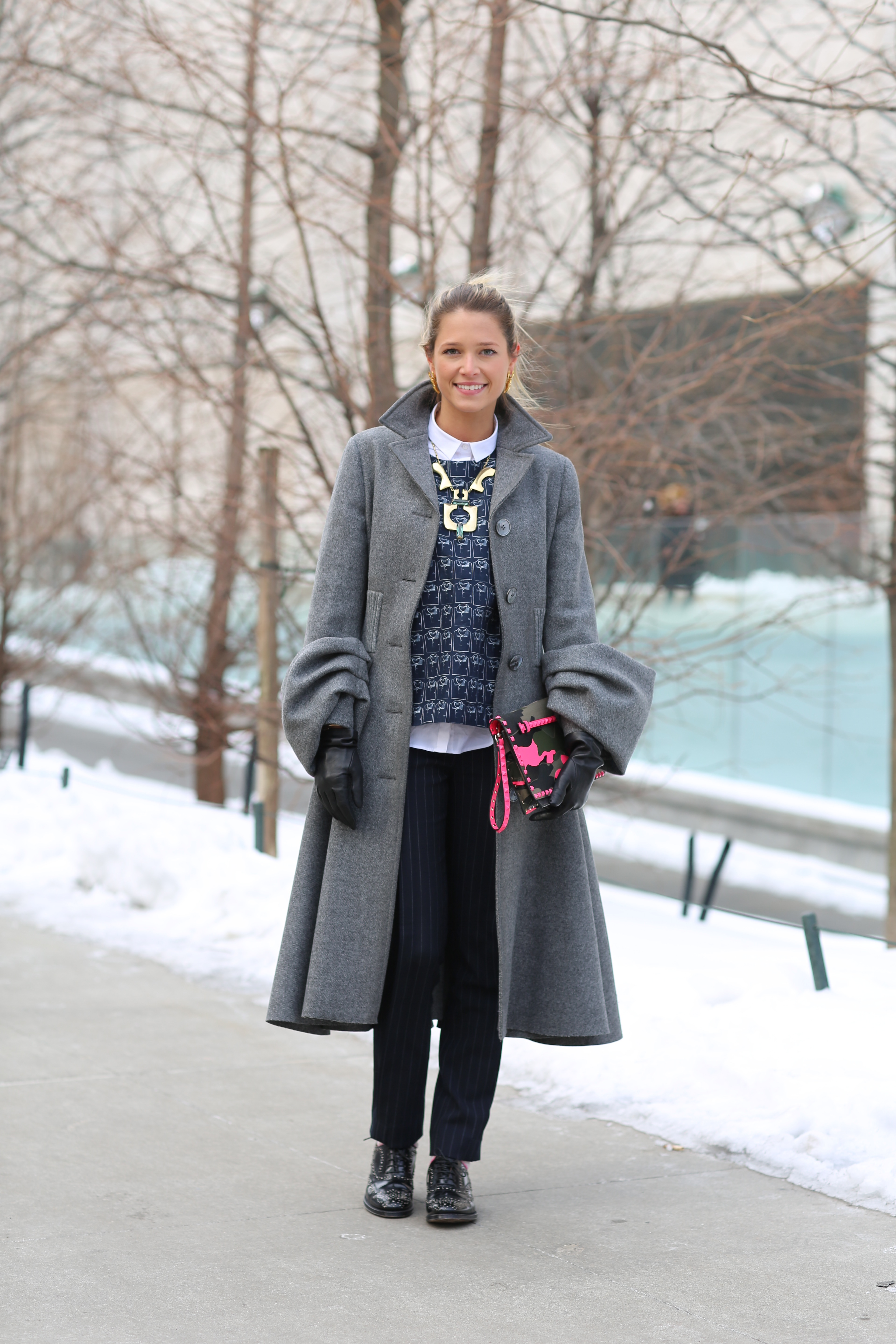 Para os desfiles da Lacoste e Prabal Gurung, eu usei casaco Prada, camisa Cos, blusa por cima Lacoste, colar Camila Klein, calça Mixed, sapato Churches, brinco de lagosta Virzi de Lucca e clutch Valentino. Gostaram?