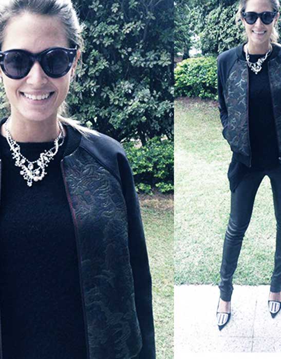 A aposta de hoje foi no look Esporte Chic. A jaqueta Bomber ganha o mood militar e é a peça-chave do look, responsável pelo lado descontraído e esportivo do visual. O colar Statement se encarrega do toque feminino e o scarpin arremata a produção com sofisticação. Calça de couro Clé, cashmere Zadig & Voltaire, jaqueta BoBo, sapato Dior, bolsa Ferragamo, óculos Cutler and Gross e colar Tom Binns.