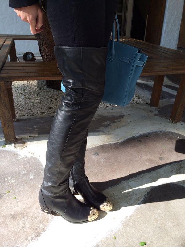 Look que usei para almoçar com as amigas! Blazer Fendi, calça J Brand, bota Chanel coleção Paris-Dallas 13/14 Métiers D”Art e bolsa Hermes. Gostaram?