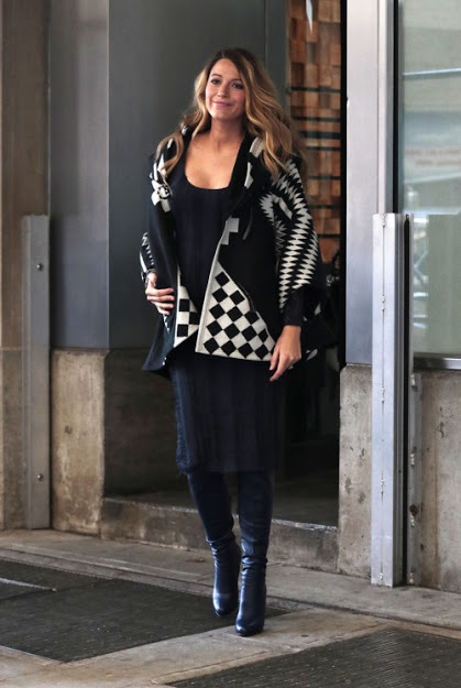 Existe alguma grávida mais linda? Blake Lively dando uma volta no Chelsea escondendo a barriguinha com um poncho! Gostaram?