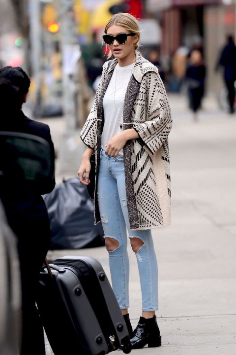 Gigi tem um estilo muito despojado e não costuma exagerar em cores e elaborar muito nos looks. Sabe aquela frase “menos é mais”? A modelo faz isso como ninguém!