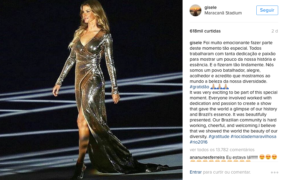 Lembra que contamos aqui para vocês que a uber Gisele iria desfilar na abertura das olimpíadas? Ao contrário do que foi revelado antes de sexta-feira, a supermodel cruzou o estádio do Maracanã com um sorriso de ponta-a -ponta e resplandecente!