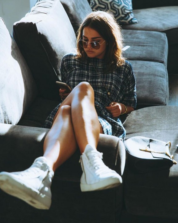 E quando se trata de sapatos, a musa busca sempre pelo conforto. Tênis, rasteiras, botas, sapatilhas, claro que todos muito estilosos e fazendo uma composição perfeita no look. Maia tem um estilo despojado e despreocupado. Camisetas, calças jeans rasgadas, shorts jeans, e looks básicos fazem dela ter um estilo super cool!