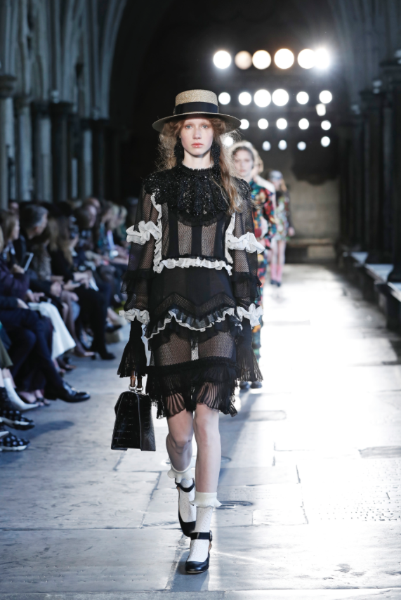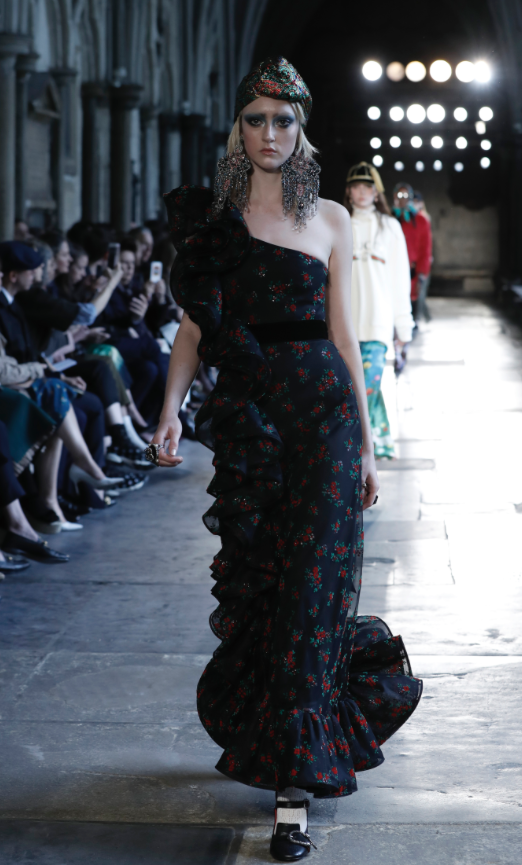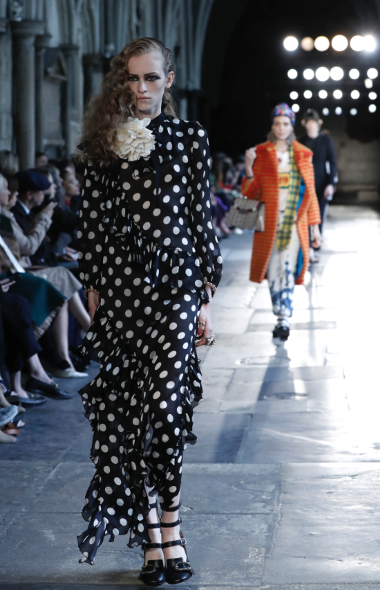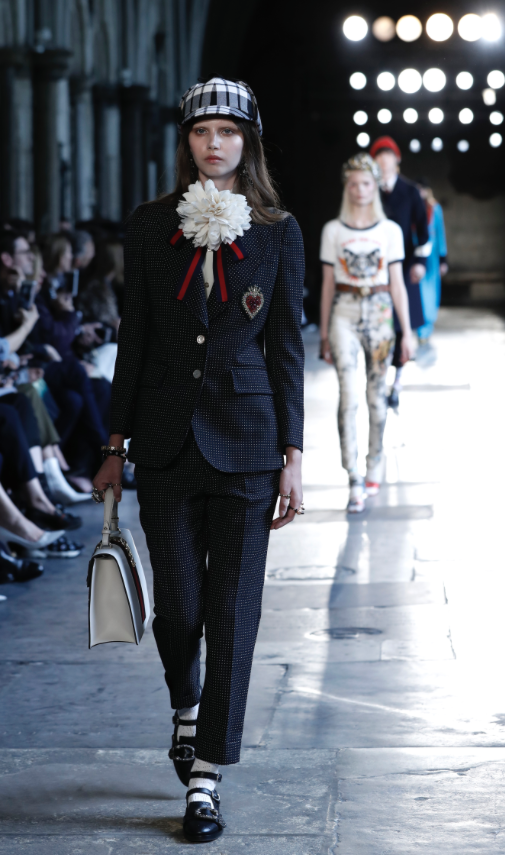 O desfile aconteceu em Londres, na Abadia de Westminster, que é uma igreja super antiga no estilo gótico. Todos tem a ideia que Londres é uma cidade cool, mas para Alexandre Michele, diretor criativo da marca, a parte histórica de Londres é o que faz a cidade realmente ser cool. “Gosto dessa ideia de algo que ao mesmo tempo é e não é óbvio. O passado é algo vivo, que fala conosco todos os dias. Se plantamos essa semente no presente, algo floresce”, diz o diretor criativo.