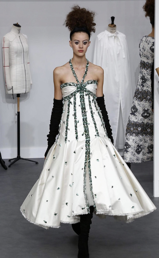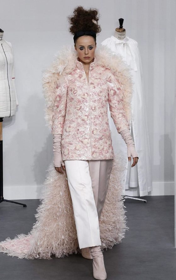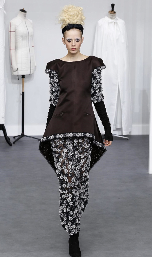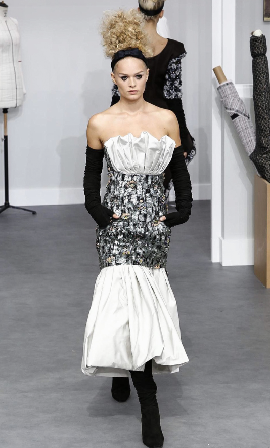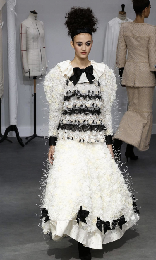 Como sempre, Karl Lagefeld, diretor criativo da marca, fez um desfile impecável. O show foi no Grand Palais, e o cenário foi feito como se fosse um ateliê, super clean, com máquinas de costuras, croquis, manequins, e com funcionários trabalhando em criações em frente ao público.