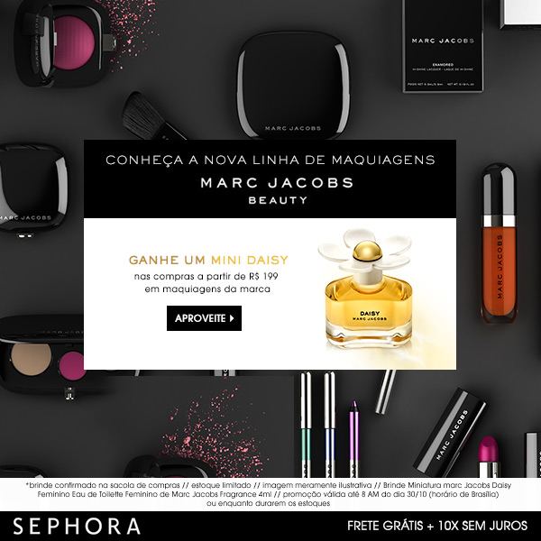 Quem ai tava sabendo que a linha Marc Jacobs Beauty vende na Sephora Brasil? Mega novidade! O melhor? Eles estão dando de brinde uma miniatura super charmosa do perfume Daisy em todas as compras de maquiagem MJ a partir de R$199,00. Além de fofo, tem uma fragrância deliciosa e tamanho para levar em viagem!