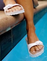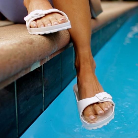 A marca Birkenstock lançou uma linha chamada EVA que é totalmente à prova d’agua que são ideais para atividade relacionadas ao bem-estar e ao livre, são perfeitas para serem usadas em ambientes como sauna, praia e piscina por exemplo. Todas as sandálias da linha são feitas em um material sintético que produz um calçado super leve e resistente.