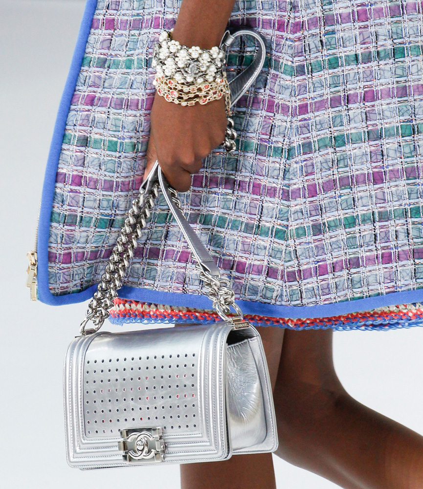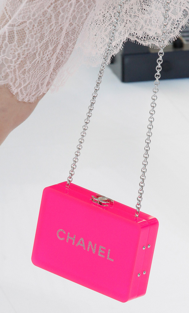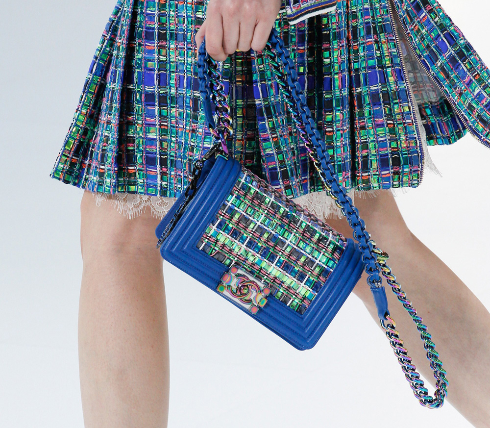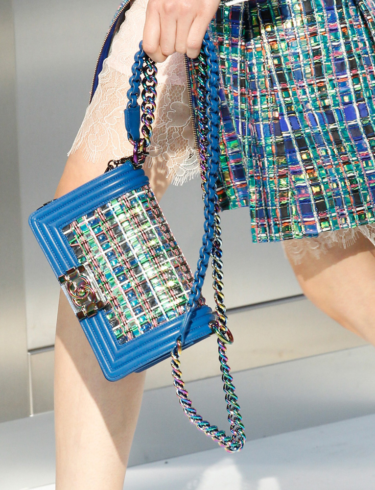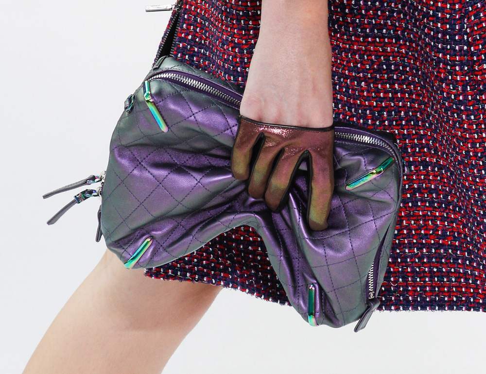 Mesmo as bolsas mais conceituais desfiladas, são super usáveis. Repaginou a bolsa Boy que é um hit da marca, com tweed e microchips. Fez uma bolsa de metal, clutch furta-cor, e criou um robô lindo em formato de bolsa. Queremos tudo!!!