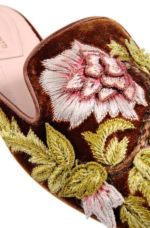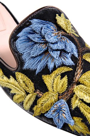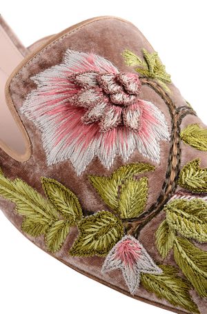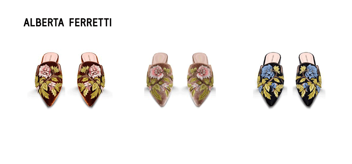 A maison italiana Alberta Ferretti, fez uma flat que simplesmente estamos viciados! Ela foi feita em 3 variações de cor: conhaque, preto e rosa pastel. Todas em veludo, com bordado de flores na sua superfície e solado de couro. Por mais que pareça ser um sapato difícil de usar, não é. Ela realmente vai com tudo e consegue dar um up no look e deixar o visual descolado e elegante.