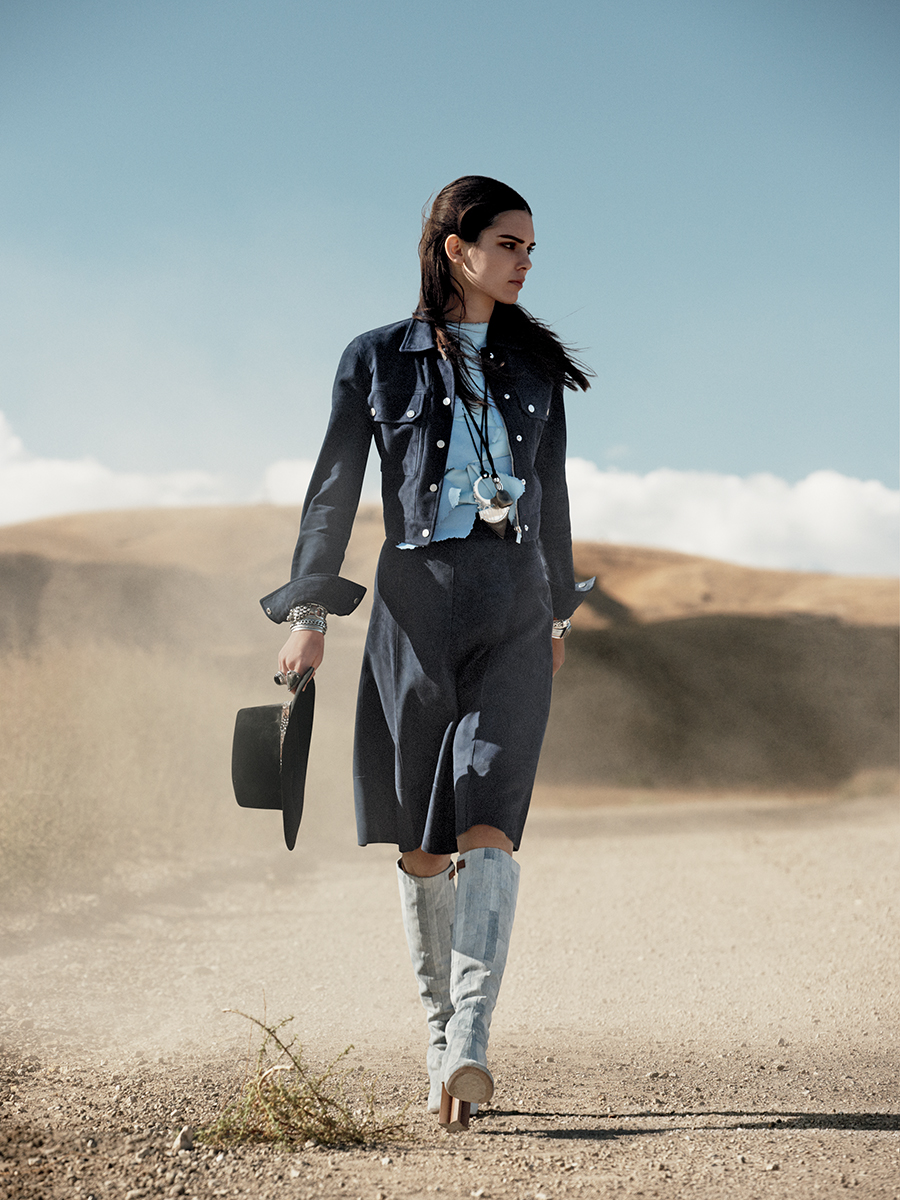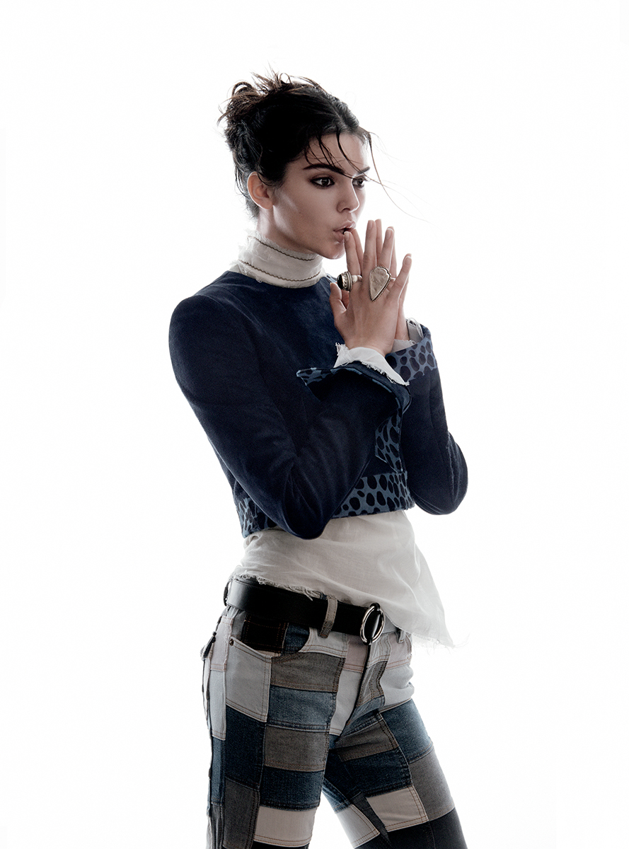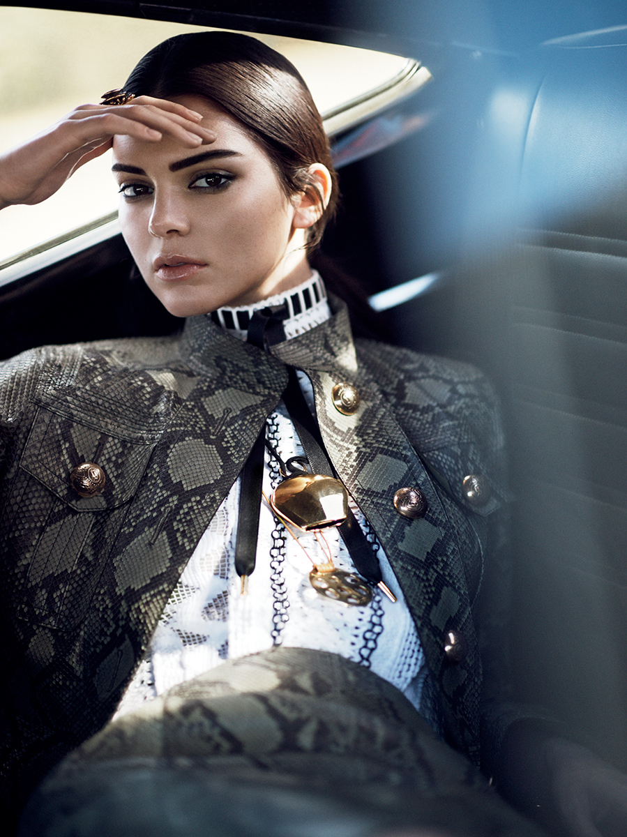 Para a edição de Janeiro 2015 da Vogue US, a modelo Kendall Jenner posa para as lentes do fotoógrafo David Sims usando o tema da vez: cropped jackets!