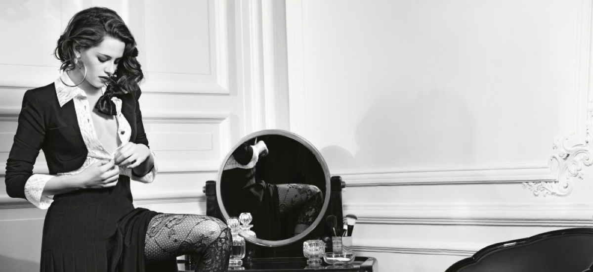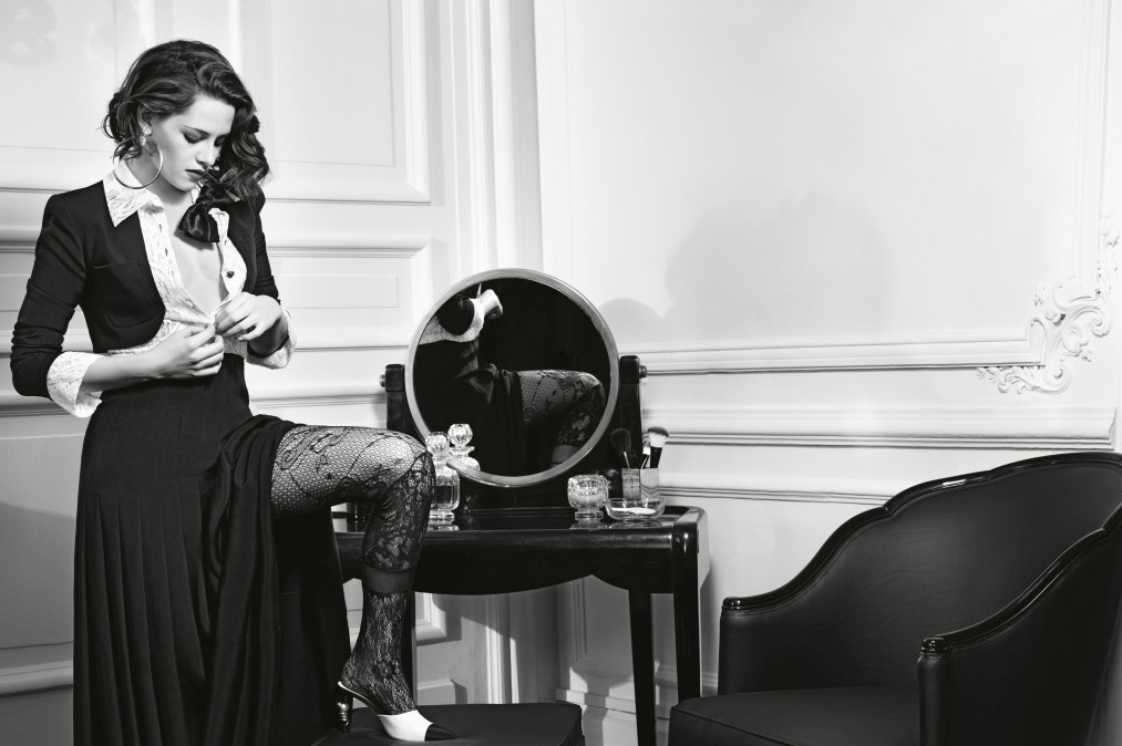 Kristen é a queridinha de Karl Lagerfeld desde 2013, quando virou o rosto da marca, e mostrou sua paixão pelo mundo da moda além da sua carreira como atriz. A parceria começou quando Stewart foi selecionada para a primeira fila do Métiers d’Art Paris-Dallas e depois Métiers d’Art Paris-Roma. Pousou também para uma campanha de óculos primavera-verão 2015, estreou em um curta-metragem com o Karl no ano passado, e foi fotografada recentemente por Mario Testino para uma campanha de make-up da Chanel.