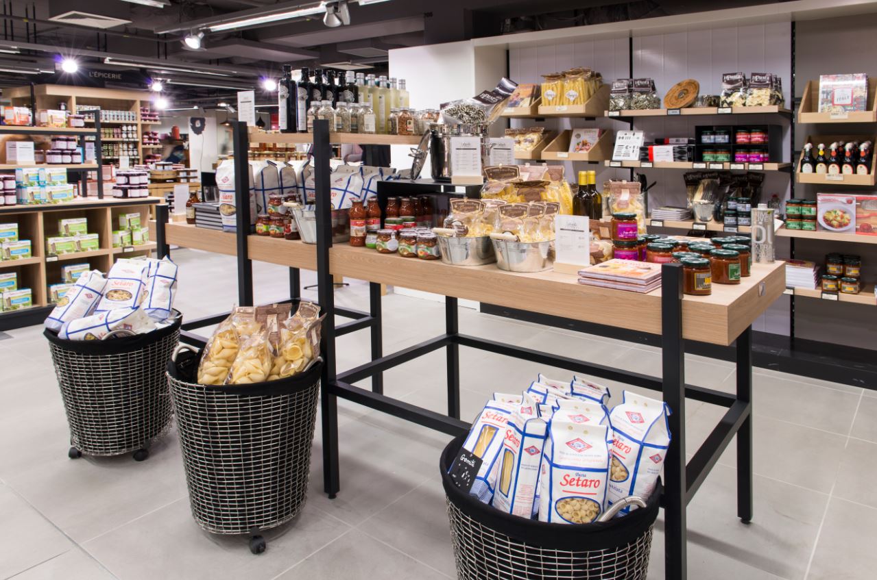 Descubra a mercearia de produtos finos e o mercado da Lafayette Gourmet, no piso térreo inferior da loja, com a sua oferta de foie gras, trufas, peixes no viveiro, bar de ostras e pratos de frutos do mar, produtos e pratos italianos, frutas e legumes, frios da Alsácia, queijos sofisticados ao leite fresco, açougue tradicional e aves Miéral.