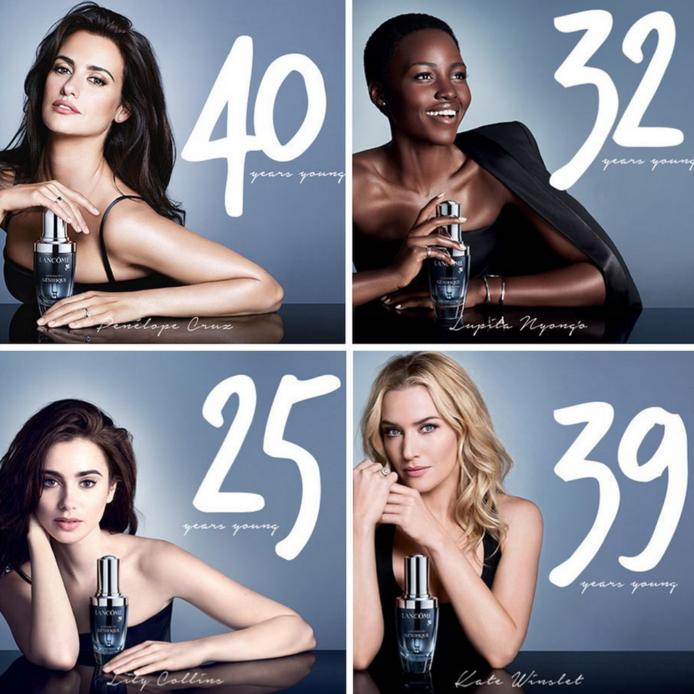 A Lancôme acaba de divulgar a nova campanha para seu novo serum Advanced Génifique com um super time de beldades. Pelas imagens divulgadas, podemos ver que o novo serum serve para todas as idades e tons de pele, promete ser um sucesso. No vídeo da campanha (abaixo) as atrizes divulgam suas idades reais e incentivam mulheres do mundo todo a se orgulhar da idade que tem e nada de esconder o verdadeiro número.